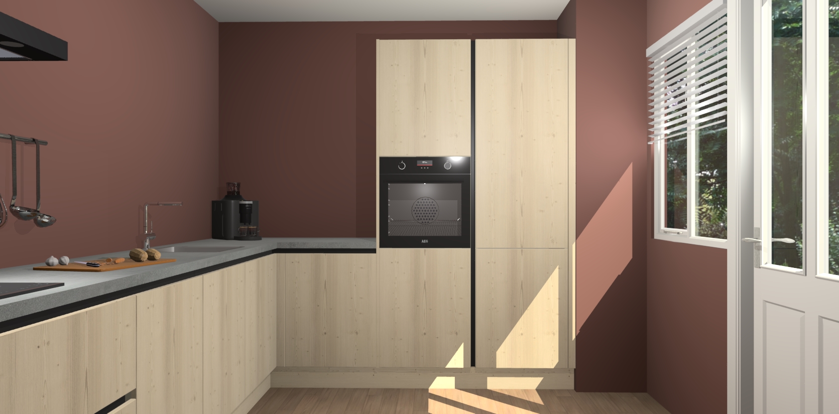 Welkom bij de Vuren greeploze keuken Portland. Deze prachtige keuken zal de komende jaren het middelpunt van de belangstelling in uw huis zijn. Uitgerust met vijf inbouwapparaten komt u nooit kookgereedschap tekort. Bovendien geeft de warme houtlook elke ruimte een uitnodigende en tijdloze uitstraling.