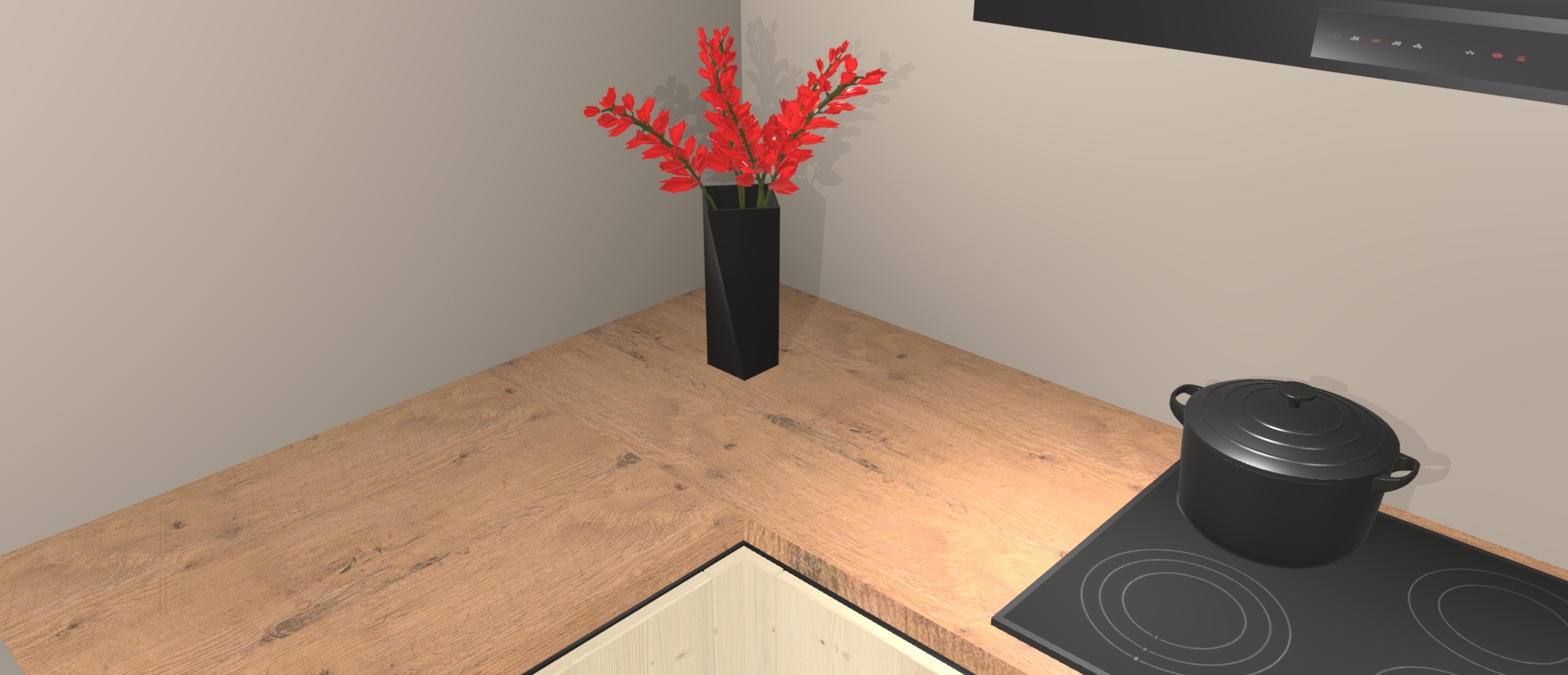 • Bij een hoekwerkblad zijn de hoeken in gevreesd en op maat gemaakt