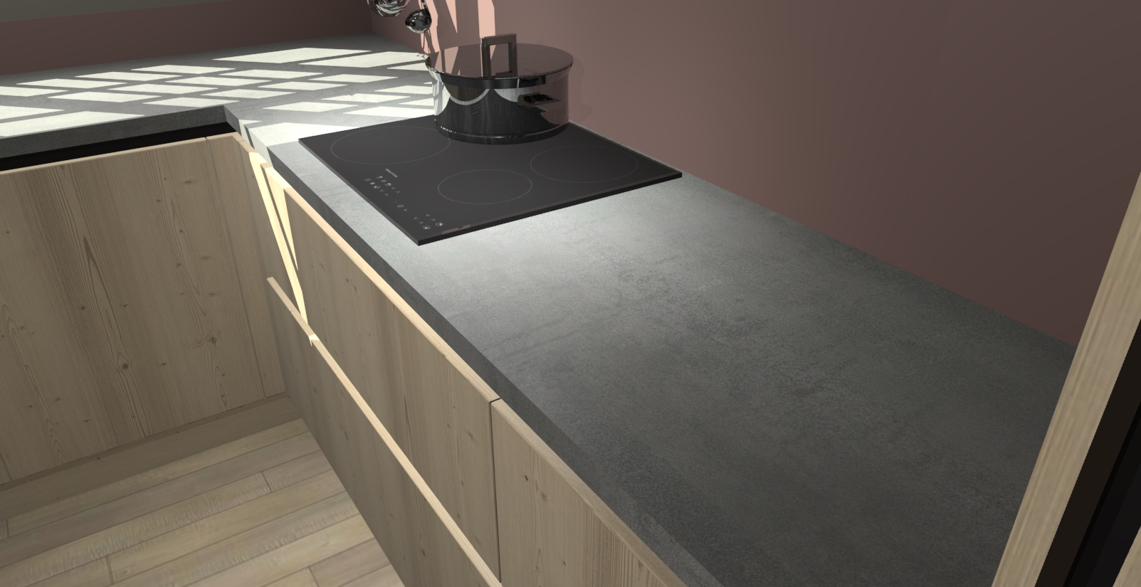 - Bij een hoekwerkblad zijn de hoeken in gevreesd en op maat gemaakt