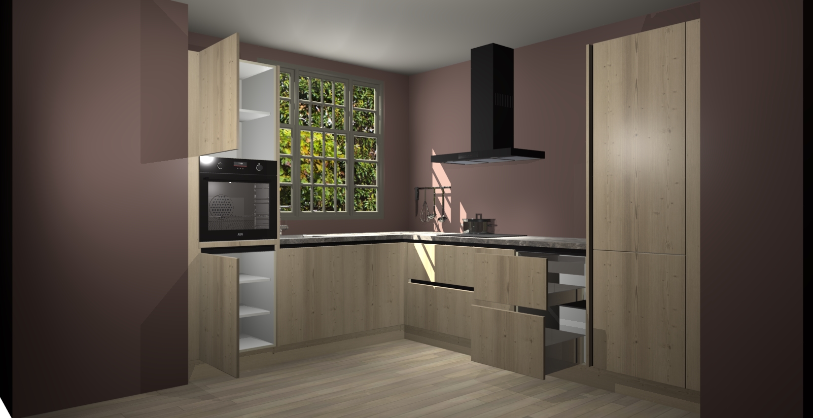 Met een modern, tijdloos design en ruime opslagruimte, zult u zich in no-time thuis voelen in uw nieuwe keuken. Uw leven wordt eenvoudiger met de soft-close deuren die voor het ultieme stille comfort zorgen - geen geluid dat u stoort terwijl u kookt. Ook is de keuken voorzien van 5 ingebouwde apparaten: een oven, inductie kookplaat, afzuigkap, vaatwasser en koelkast. Deze kunnen gemakkelijk na bestelling worden bijgewerkt naar AEG - waardoor uw luxe ervaring compleet is.