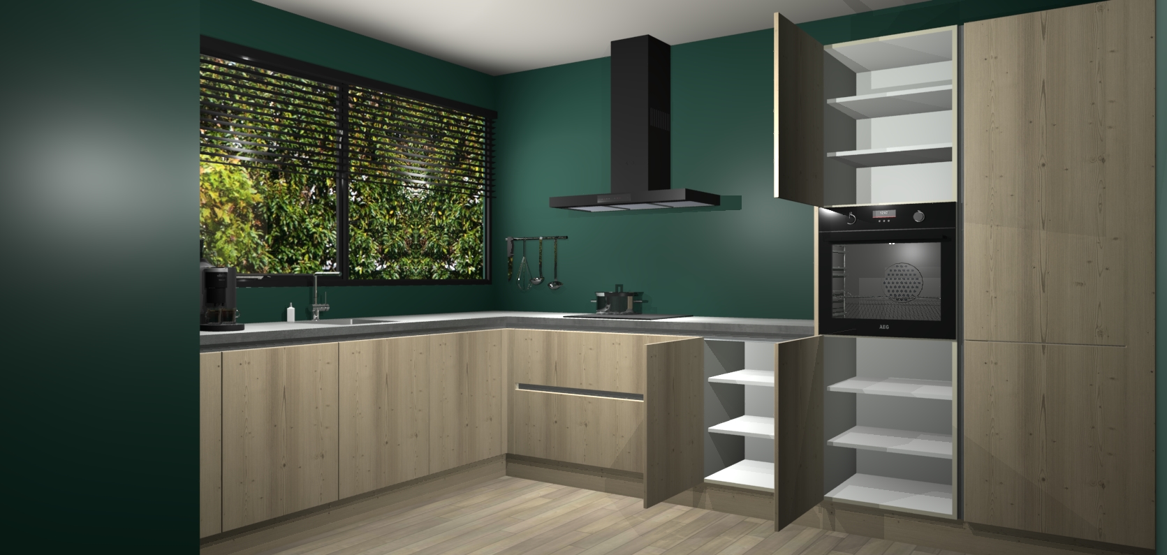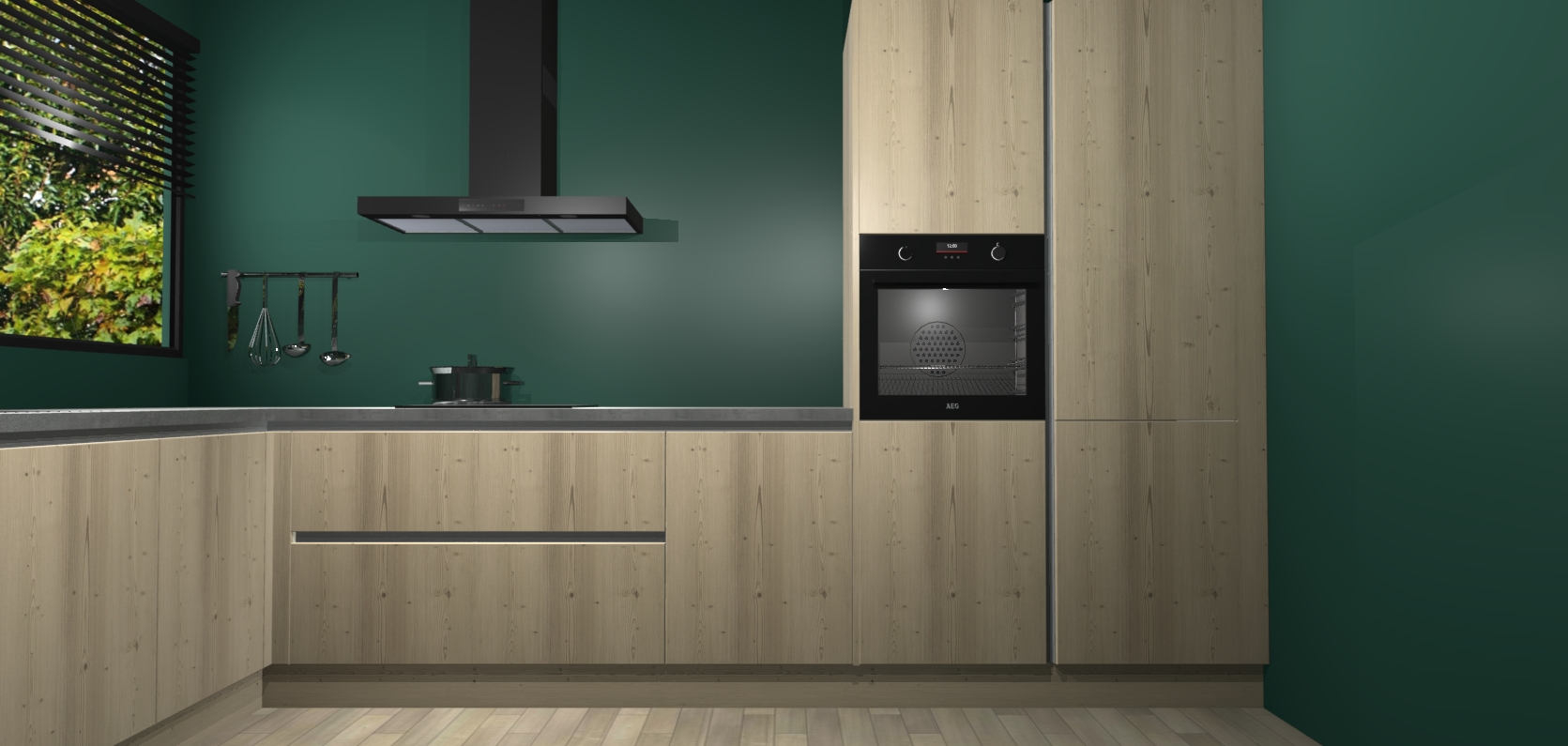 Met een modern, tijdloos design en ruime opslagruimte, zult u zich in no-time thuis voelen in uw nieuwe keuken. Uw leven wordt eenvoudiger met de soft-close deuren die voor het ultieme stille comfort zorgen - geen geluid dat u stoort terwijl u kookt. Ook is de keuken voorzien van 5 ingebouwde apparaten: een oven, inductie kookplaat, afzuigkap, vaatwasser en koelkast. Deze kunnen gemakkelijk na bestelling worden bijgewerkt naar AEG - waardoor uw luxe ervaring compleet is.