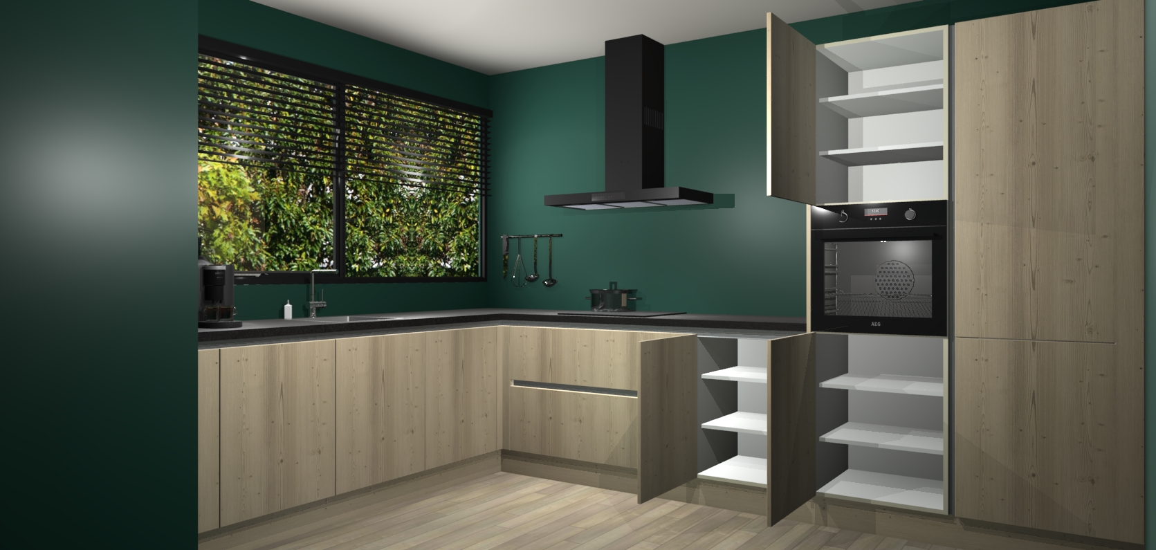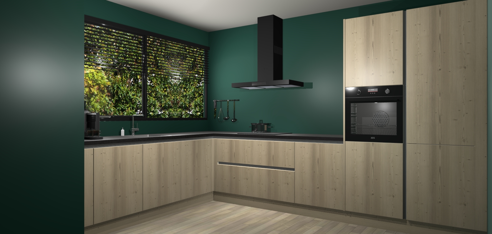 Met een modern, tijdloos design en ruime opslagruimte, zult u zich in no-time thuis voelen in uw nieuwe keuken. Uw leven wordt eenvoudiger met de soft-close deuren die voor het ultieme stille comfort zorgen - geen geluid dat u stoort terwijl u kookt. Ook is de keuken voorzien van 5 ingebouwde apparaten: een oven, inductie kookplaat, afzuigkap, vaatwasser en koelkast. Deze kunnen gemakkelijk na bestelling worden bijgewerkt naar AEG - waardoor uw luxe ervaring compleet is.