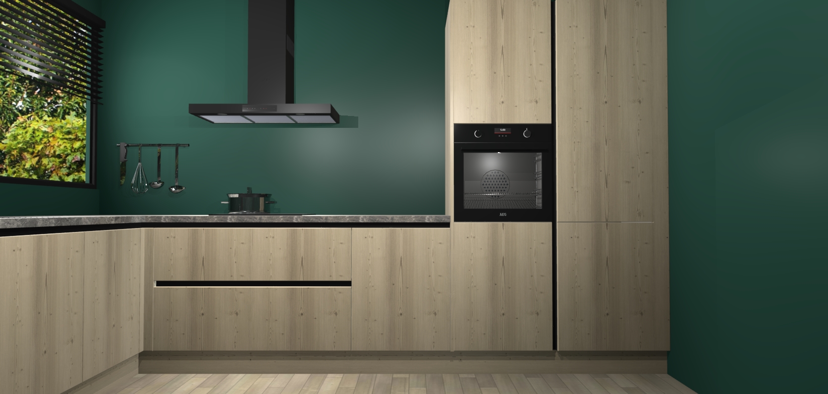 Met een modern, tijdloos design en ruime opslagruimte, zult u zich in no-time thuis voelen in uw nieuwe keuken. Uw leven wordt eenvoudiger met de soft-close deuren die voor het ultieme stille comfort zorgen - geen geluid dat u stoort terwijl u kookt. Ook is de keuken voorzien van 5 ingebouwde apparaten: een oven, inductie kookplaat, afzuigkap, vaatwasser en koelkast. Deze kunnen gemakkelijk na bestelling worden bijgewerkt naar AEG - waardoor uw luxe ervaring compleet is.