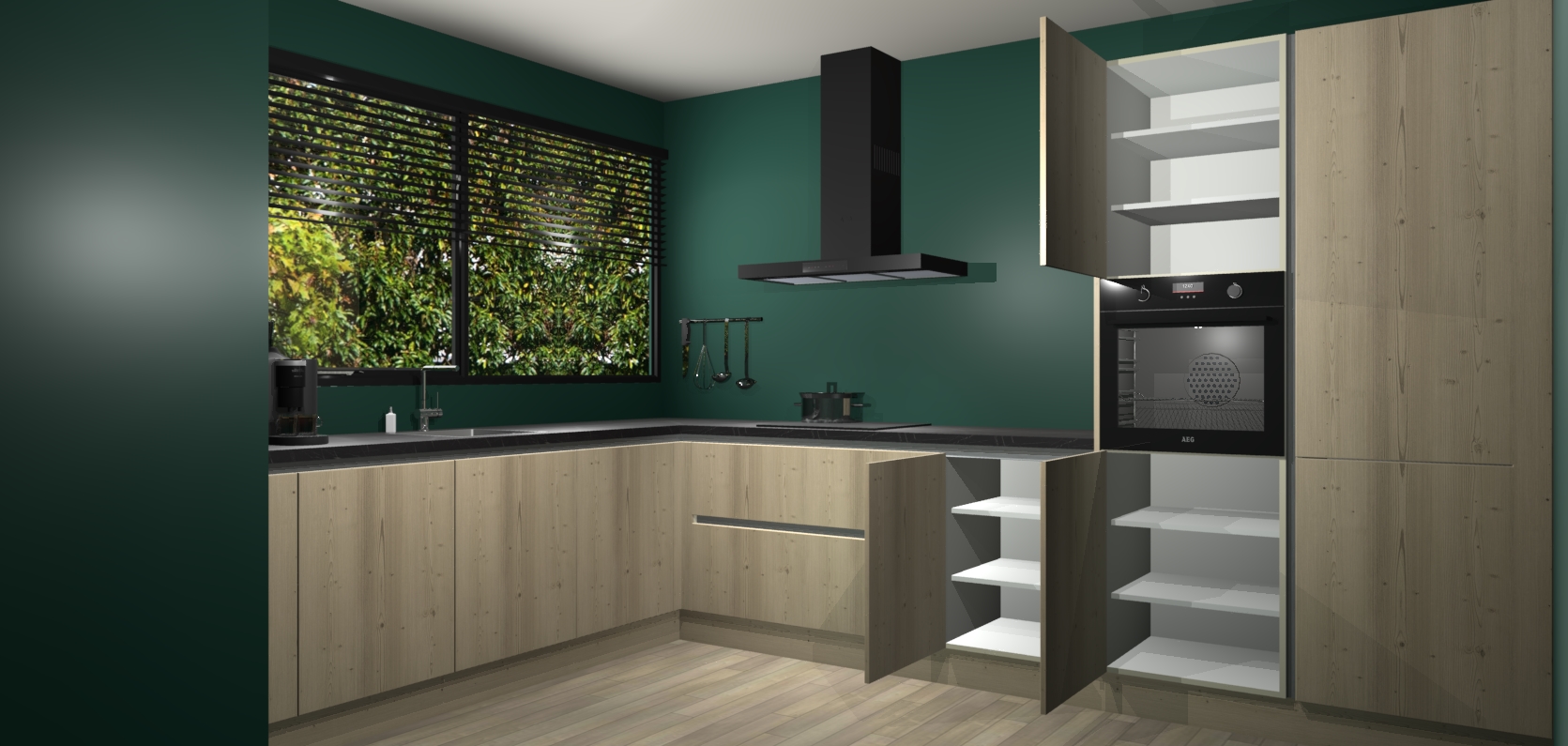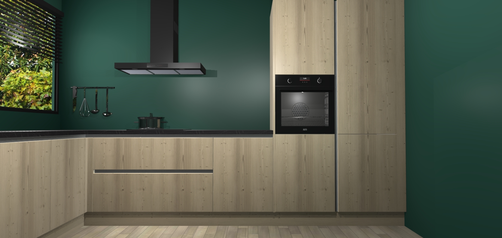 Met een modern, tijdloos design en ruime opslagruimte, zult u zich in no-time thuis voelen in uw nieuwe keuken. Uw leven wordt eenvoudiger met de soft-close deuren die voor het ultieme stille comfort zorgen - geen geluid dat u stoort terwijl u kookt. Ook is de keuken voorzien van 5 ingebouwde apparaten: een oven, inductie kookplaat, afzuigkap, vaatwasser en koelkast. Deze kunnen gemakkelijk na bestelling worden bijgewerkt naar AEG - waardoor uw luxe ervaring compleet is.