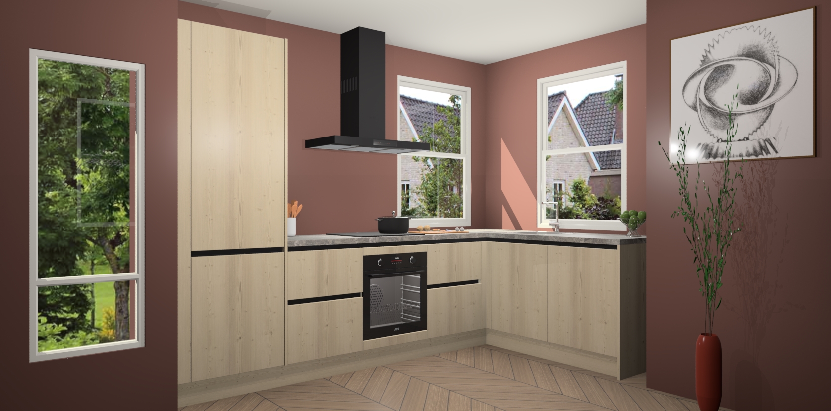 Welkom bij de Vuren greeploze keuken Salzburg! Met een chique combinatie van een prachtig houten werkblad, klassiek design en altijd concurrerende prijzen is de Vuren greeploze keuken Salzburg de keuken van uw dromen! Deze keuken is perfect voor alle huisformaten en decorstijlen en straalt stijl en verfijning uit. Van het tijdloze design tot de functionele functies, er is geen betere manier om de look van uw woon- of kookruimte te verbeteren.