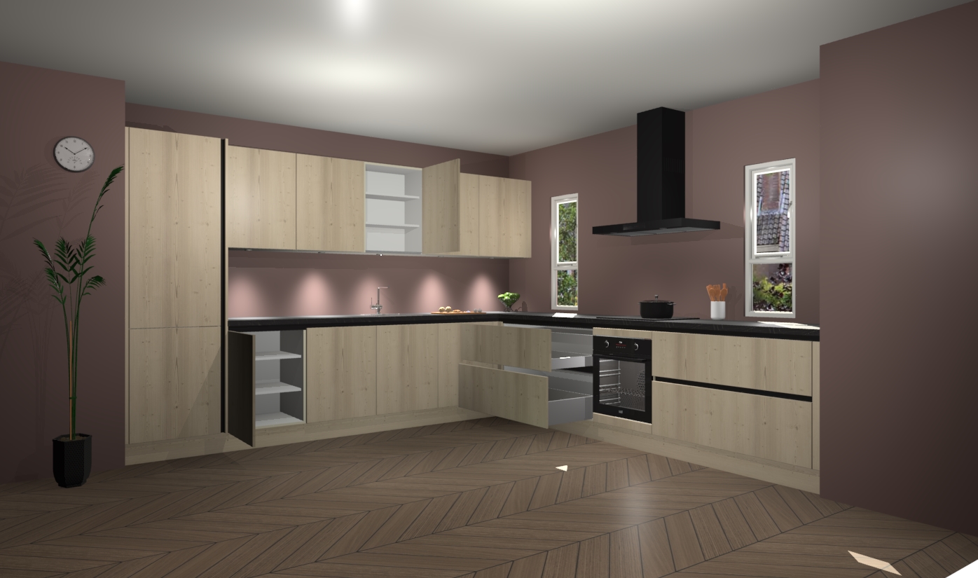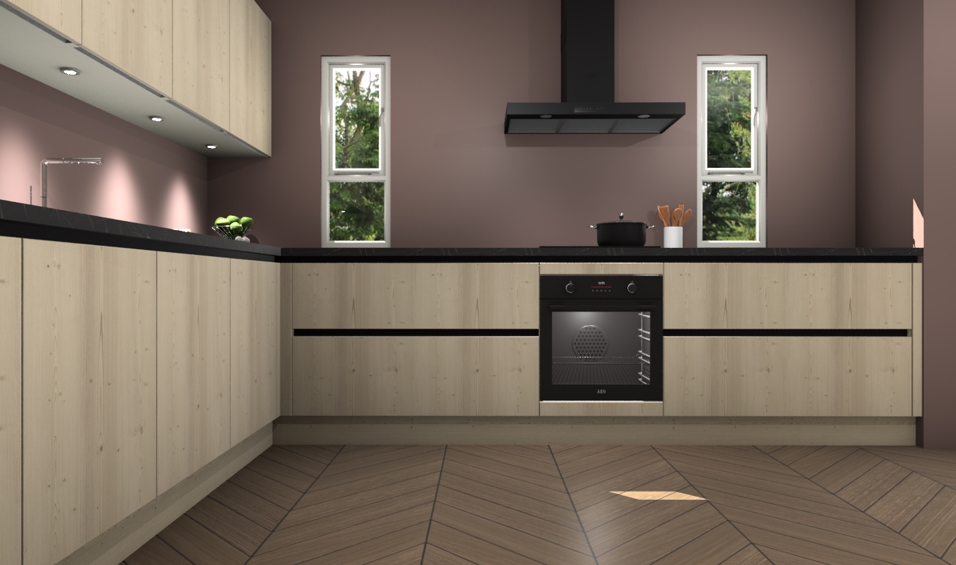 De vuren greeploze keuken is een ideale hoekkeuken en heeft alle functies en apparatuur die u maar nodig kunt hebben. Bij de bestelling krijgt u een oven, inductiekookplaat, afzuigkap, vaatwasser en koelkast - deze kunnen desgewenst eenvoudig worden uitgebreid naar AEG na bestellen. Elke kast wordt ook voor gemonteerd geleverd met soft close deuren die jarenlang gebruik beloven. Stelt u zich voor dat u geen gedoe heeft met vervelende montage - vanaf het moment dat u uw bestelling plaats, duurt het slechts 7 weken voor het bij u thuis geleverd wordt.