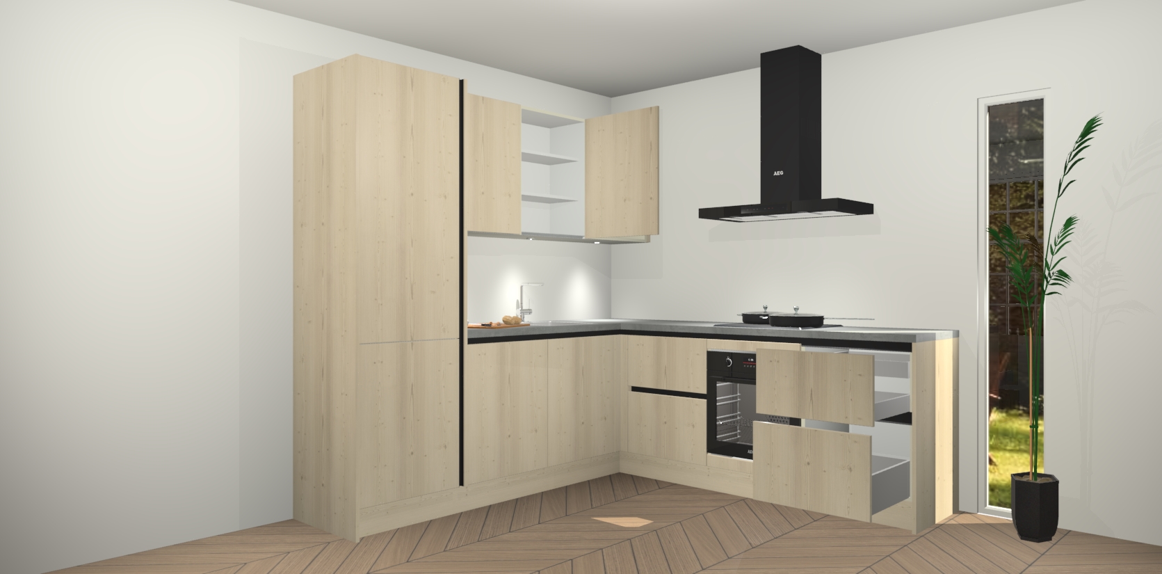 Inclusief plinten, stelpoten en werkblad