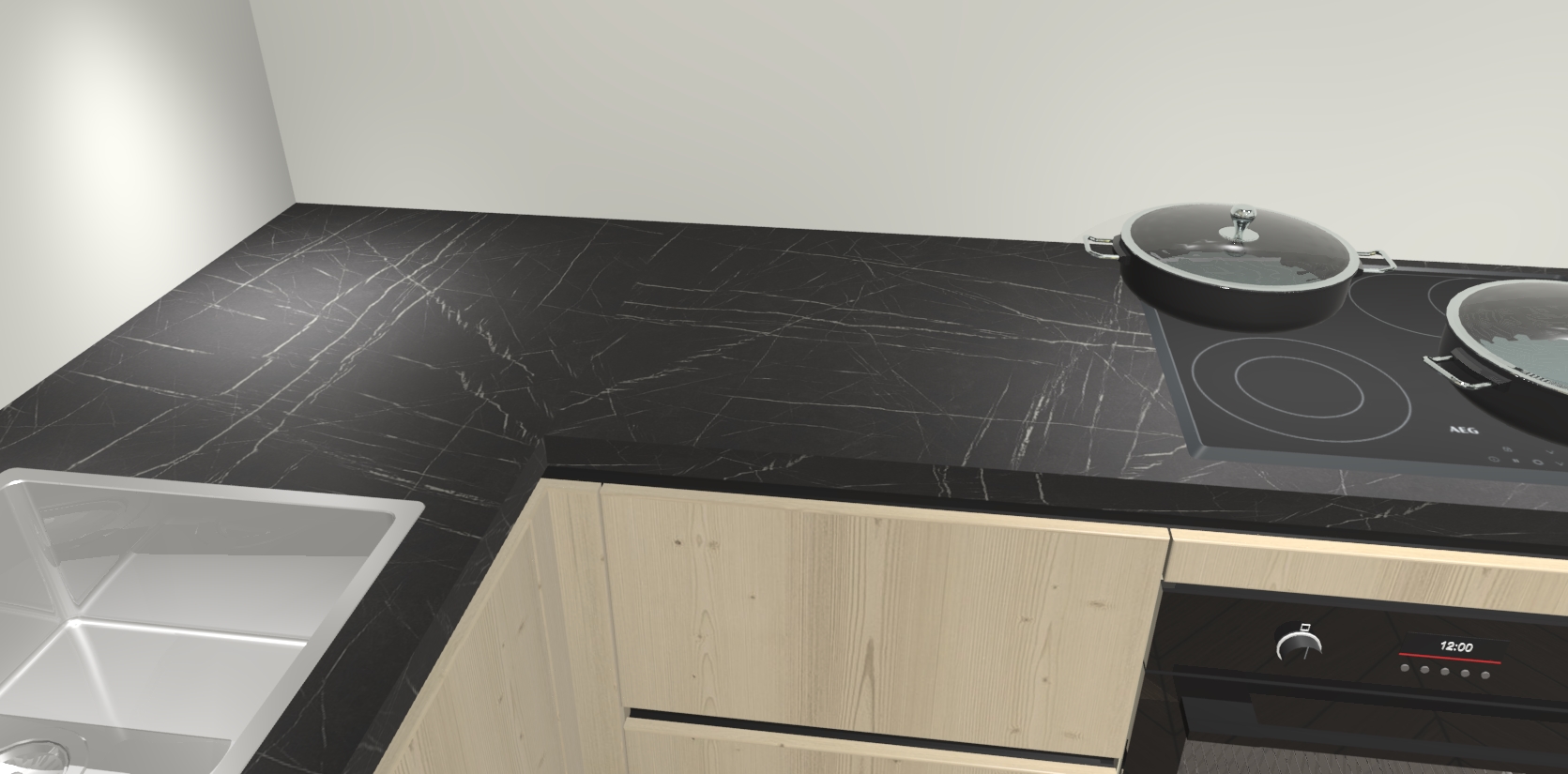 - Bij een hoekwerkblad zijn de hoeken in gevreesd en op maat gemaakt