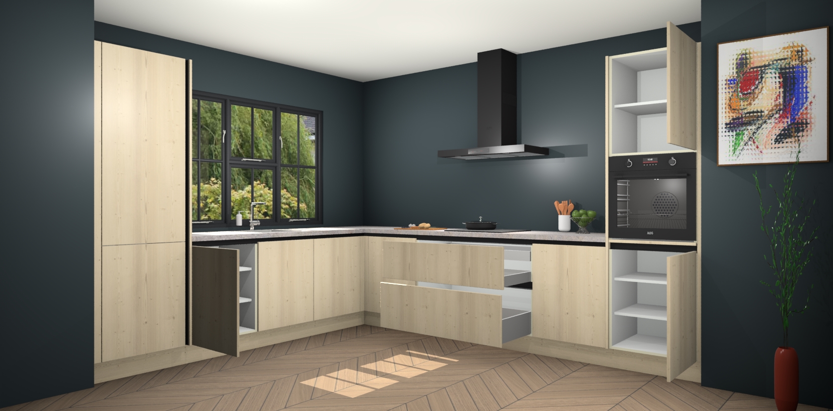 In deze box zijn alle kleuren verzameld van de deuren en werkbladen. Vraag de gratis kleurenbox aan en kijk thuis rustig verder!