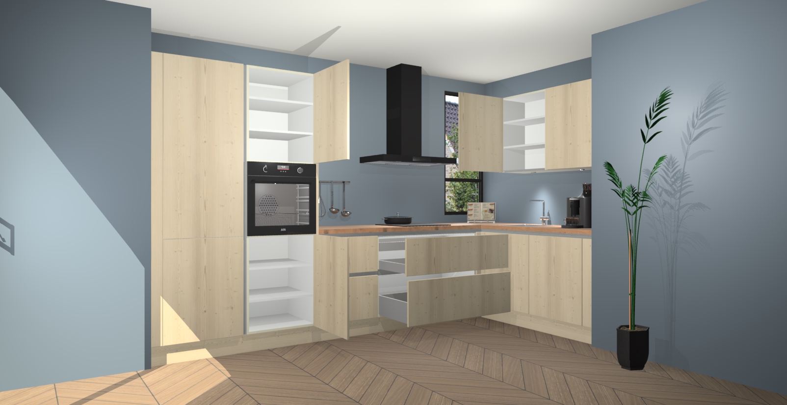 Inclusief plinten, stelpoten en werkblad