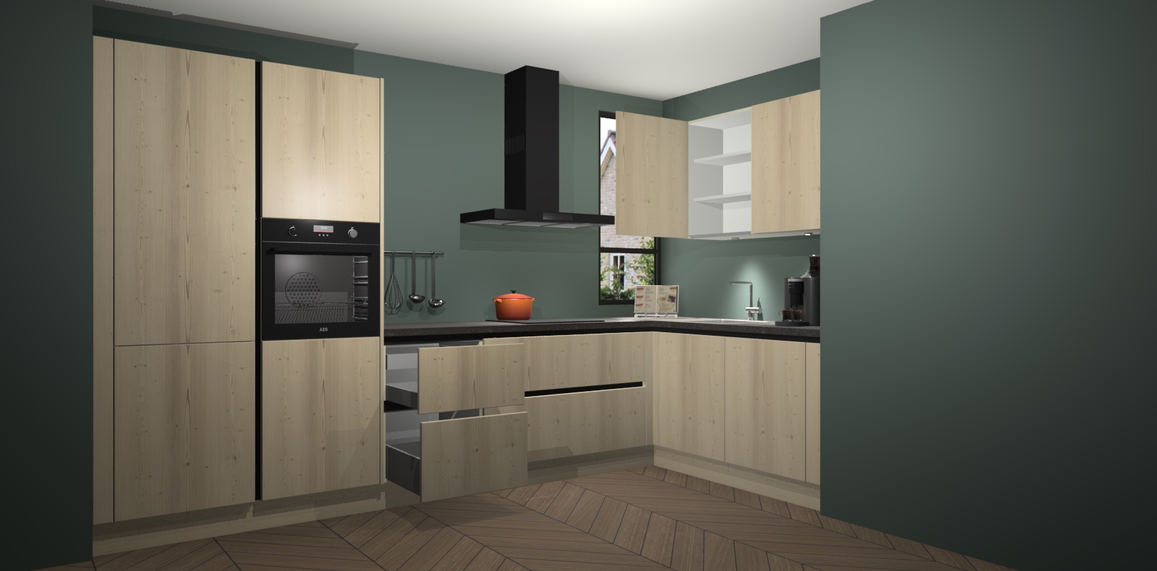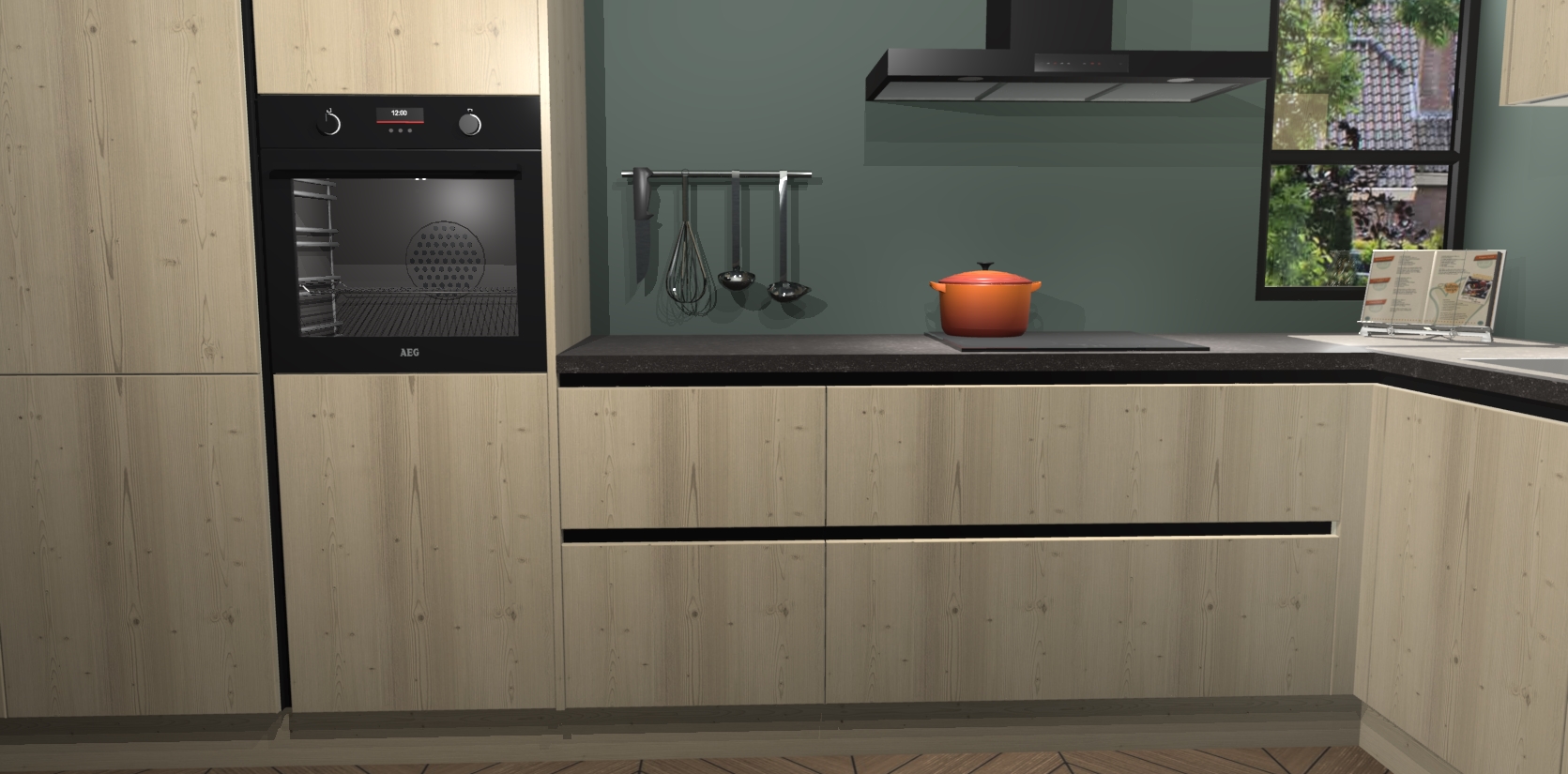Welkom in uw nieuwe moderne keuken! Laat ons u voorstellen aan de Vuren greeploze keuken Vlaanderen. Deze prachtige hoekkeuken straalt exclusiviteit en luxe uit als geen ander. Het strakke design, de tijdloze kleuren en het greeploze model maken van deze keuken een moderne klassieker. En met voldoende opbergruimte heeft deze keuken echt voor ieder wat wils.