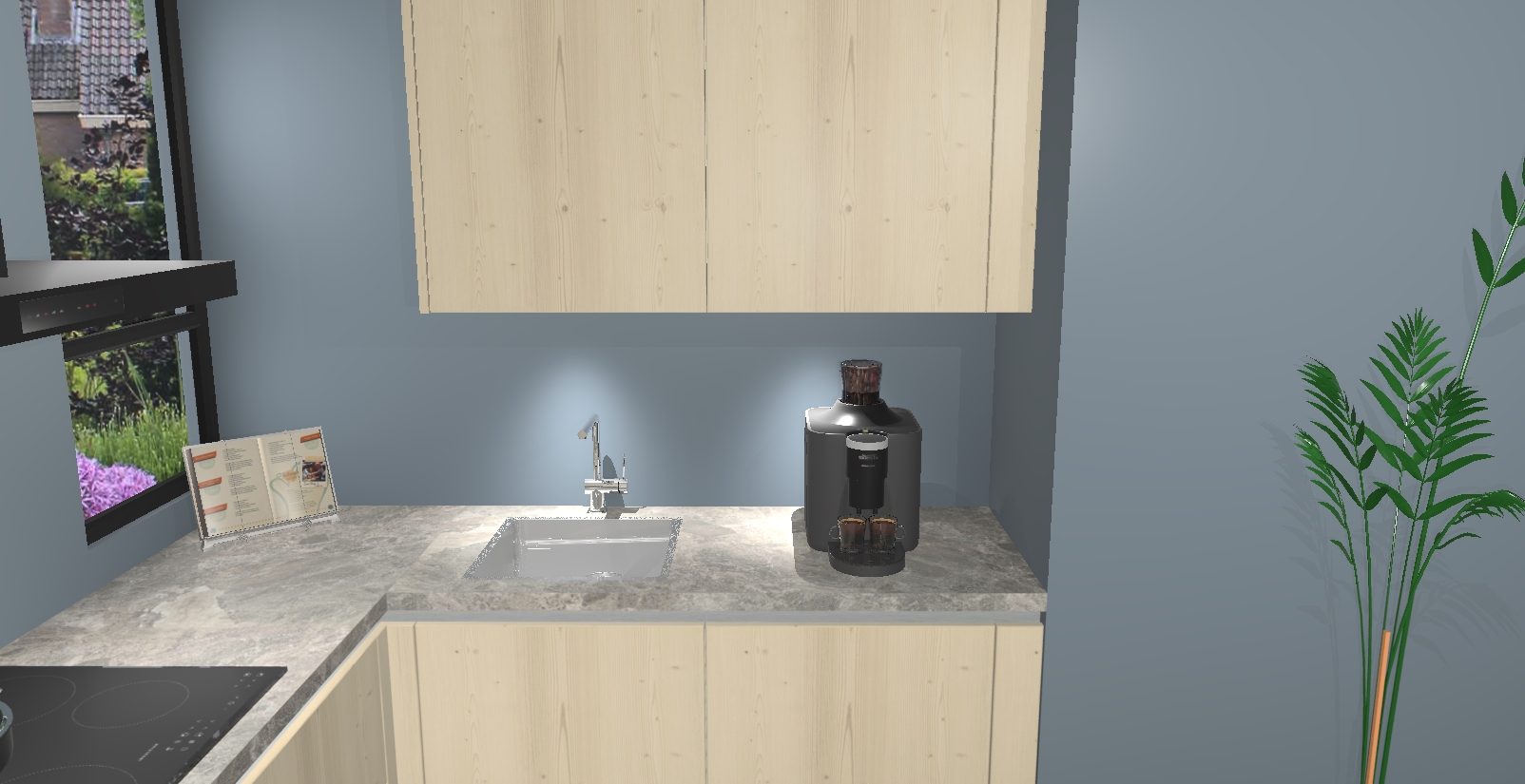 - De spoelbak is nog niet in gevreesd. Dit dient tijdens het werk gedaan te worden
