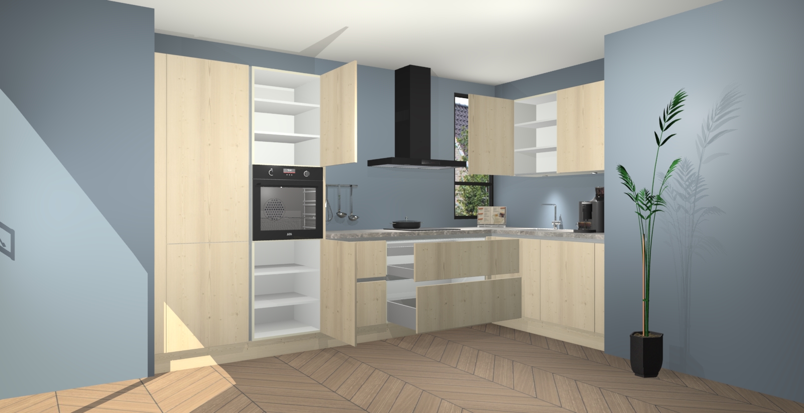 Welkom in uw nieuwe moderne keuken! Laat ons u voorstellen aan de Vuren greeploze keuken Vlaanderen . Deze prachtige hoekkeuken straalt exclusiviteit en luxe uit als geen ander. Het strakke design, de tijdloze kleuren en het greeploze model maken van deze keuken een moderne klassieker. En met voldoende opbergruimte heeft deze keuken echt voor ieder wat wils.