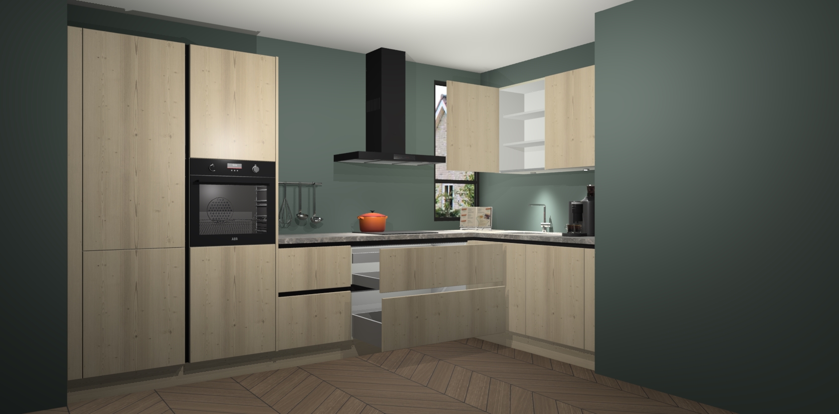 Welkom in uw nieuwe moderne keuken! Laat ons u voorstellen aan de Vuren greeploze keuken Vlaanderen. Deze prachtige hoekkeuken straalt exclusiviteit en luxe uit als geen ander. Het strakke design, de tijdloze kleuren en het greeploze model maken van deze keuken een moderne klassieker. En met voldoende opbergruimte heeft deze keuken echt voor ieder wat wils.
