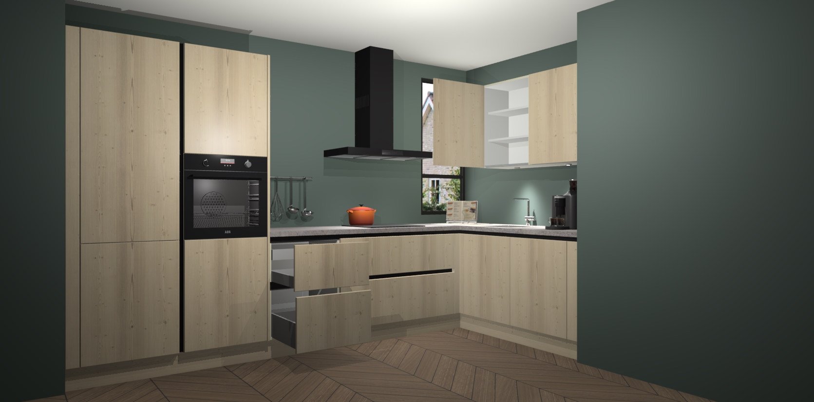 Welkom in uw nieuwe moderne keuken! Laat ons u voorstellen aan de Vuren greeploze keuken Vlaanderen. Deze prachtige hoekkeuken straalt exclusiviteit en luxe uit als geen ander. Het strakke design, de tijdloze kleuren en het greeploze model maken van deze keuken een moderne klassieker. En met voldoende opbergruimte heeft deze keuken echt voor ieder wat wils.
