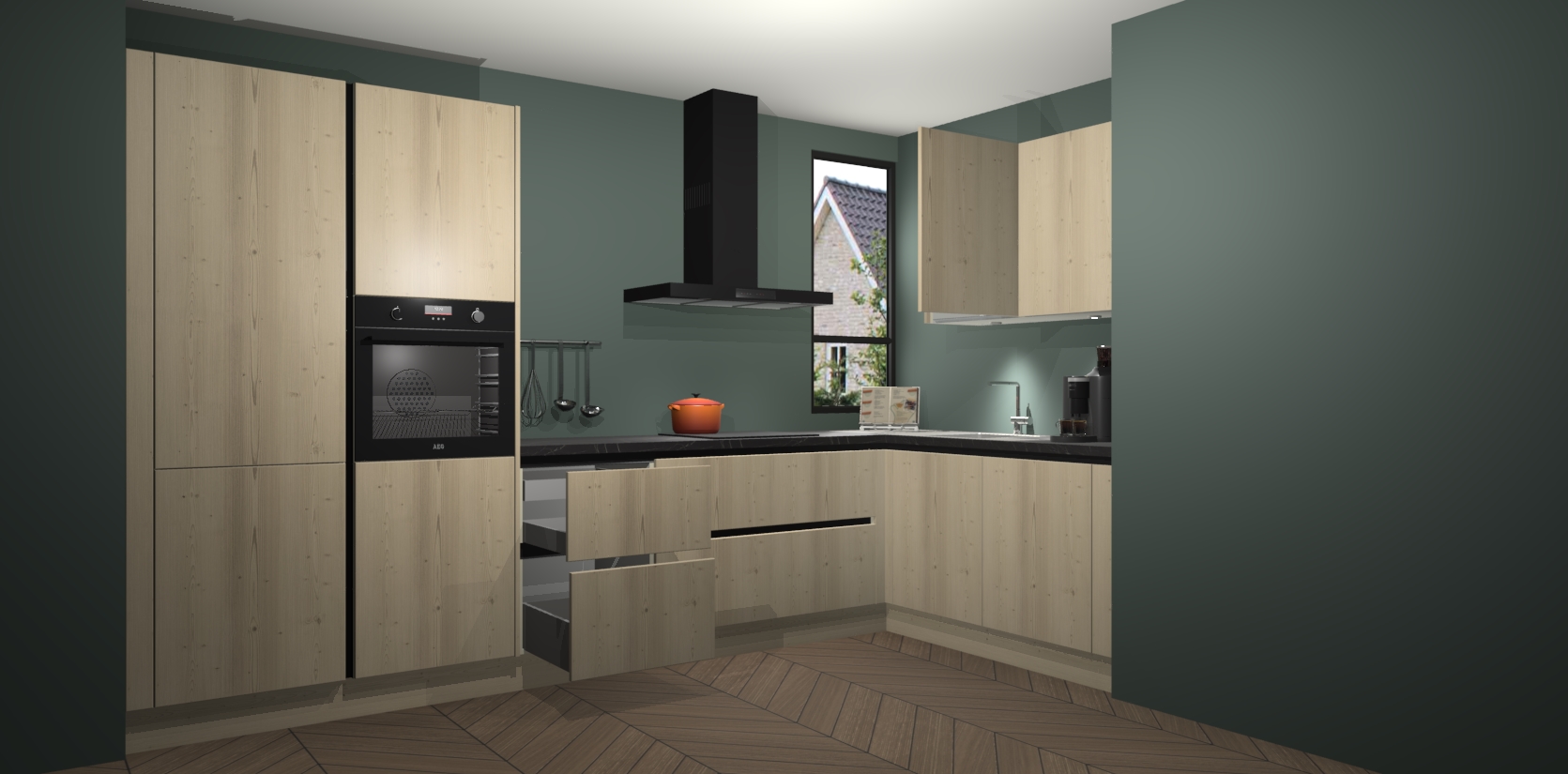 Welkom in uw nieuwe moderne keuken! Laat ons u voorstellen aan de Vuren greeploze keuken Vlaanderen. Deze prachtige hoekkeuken straalt exclusiviteit en luxe uit als geen ander. Het strakke design, de tijdloze kleuren en het greeploze model maken van deze keuken een moderne klassieker. En met voldoende opbergruimte heeft deze keuken echt voor ieder wat wils.