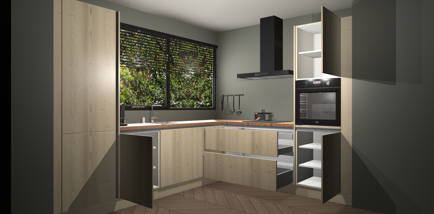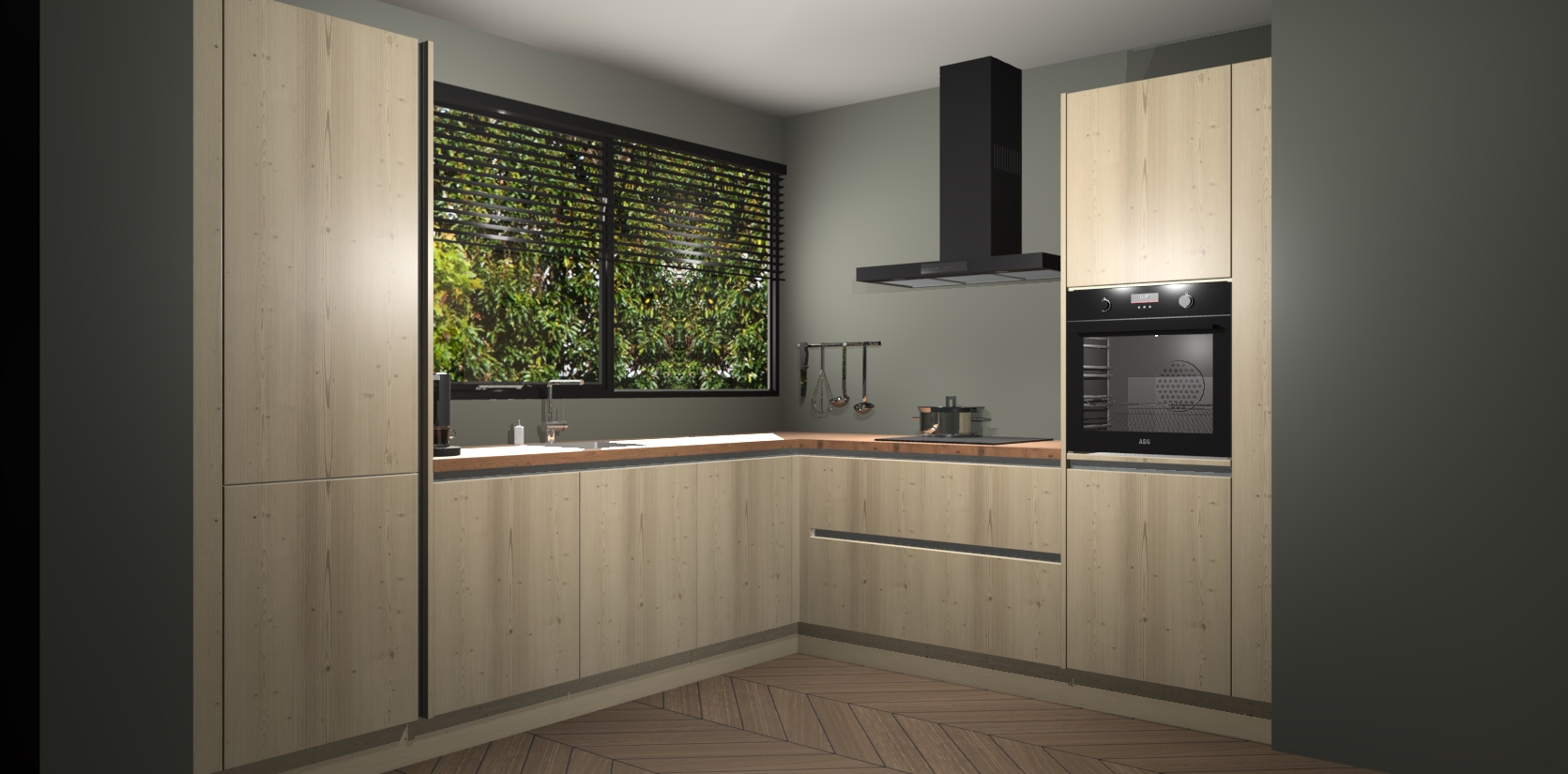 Met een modern, tijdloos design en ruime opslagruimte, zult u zich in no-time thuis voelen in uw nieuwe keuken. Uw leven wordt eenvoudiger met de soft-close deuren die voor het ultieme stille comfort zorgen - geen geluid dat u stoort terwijl u kookt. Ook is de keuken voorzien van 5 ingebouwde apparaten: een oven, inductie kookplaat, afzuigkap, vaatwasser en koelkast. Deze kunnen gemakkelijk na bestelling worden bijgewerkt naar AEG - waardoor uw luxe ervaring compleet is.