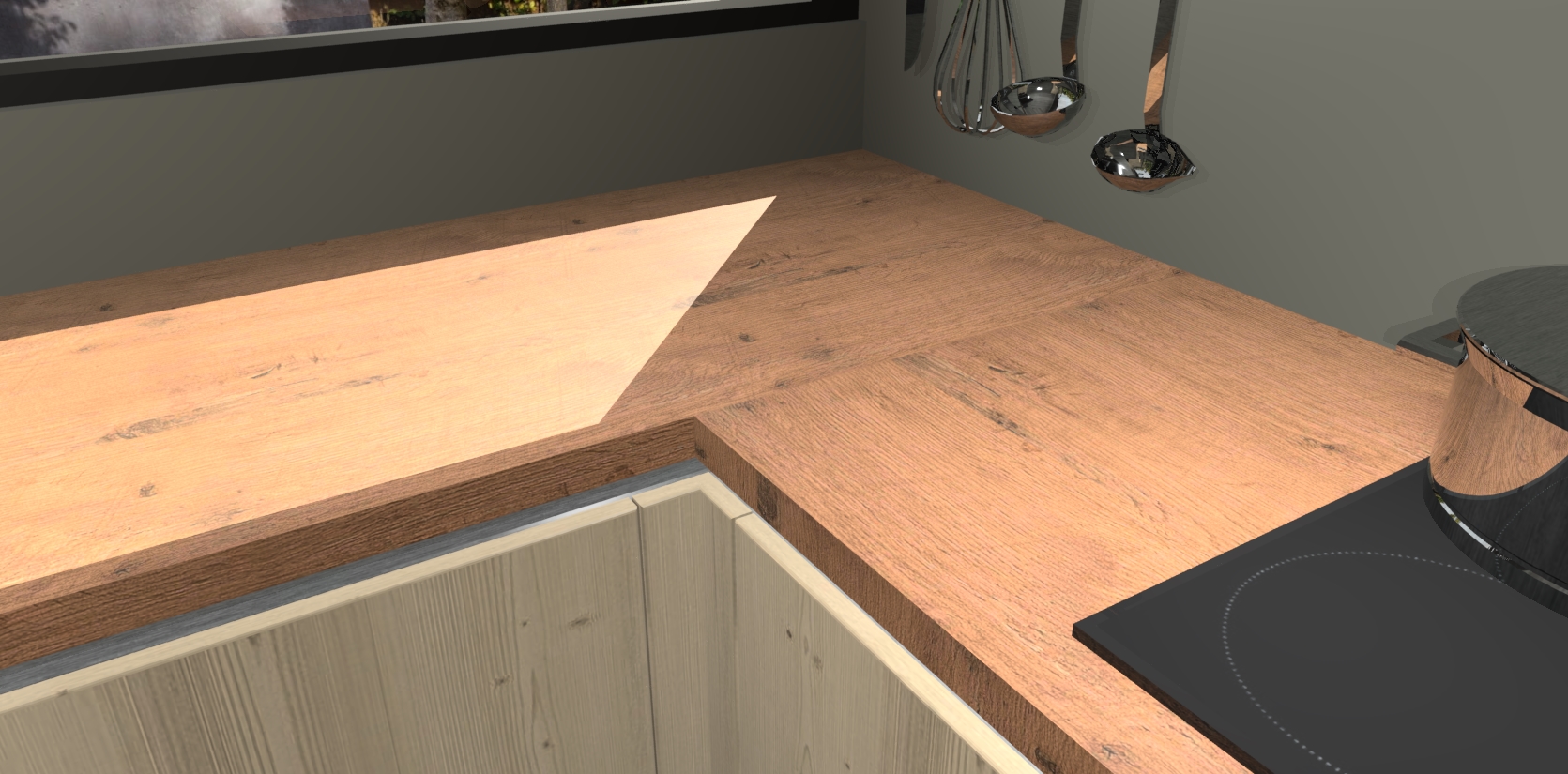 - Bij een hoekwerkblad zijn de hoeken in gevreesd en op maat gemaakt