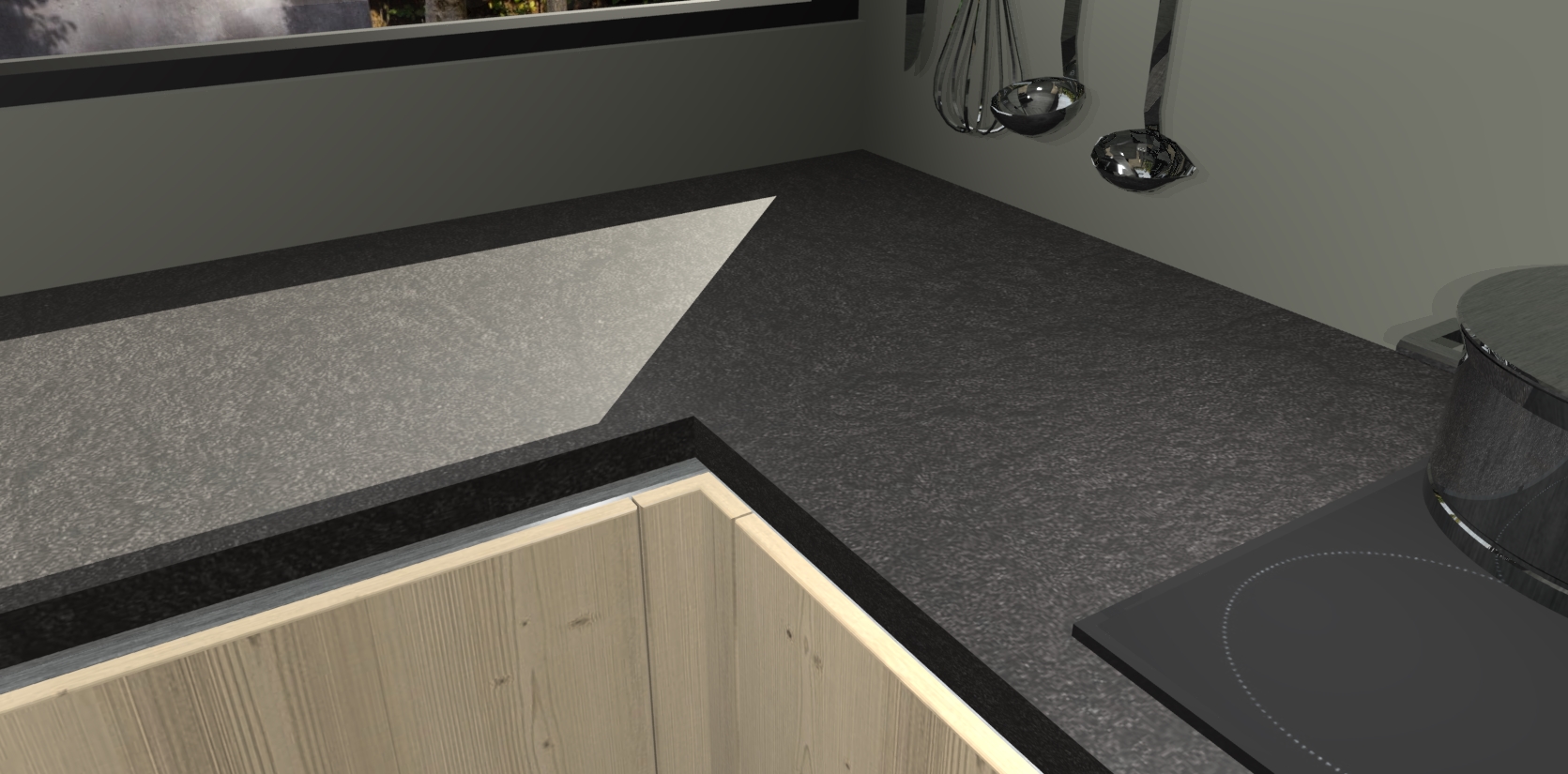 - Bij een hoekwerkblad zijn de hoeken in gevreesd en op maat gemaakt