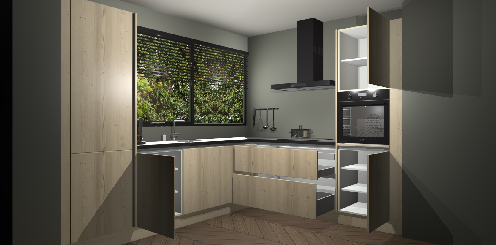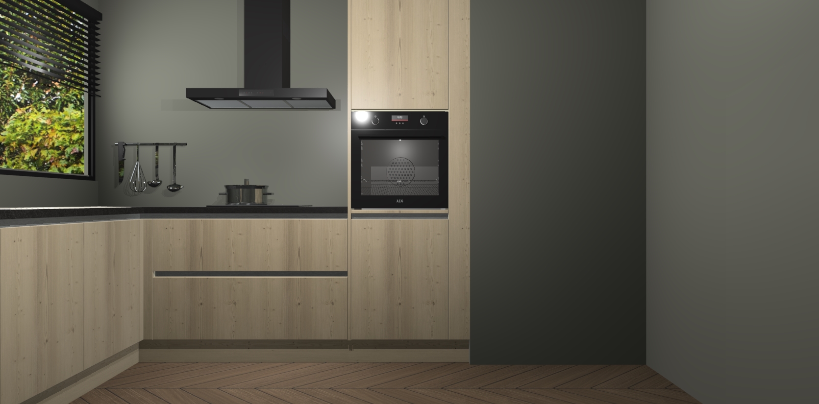 Met een modern, tijdloos design en ruime opslagruimte, zult u zich in no-time thuis voelen in uw nieuwe keuken. Uw leven wordt eenvoudiger met de soft-close deuren die voor het ultieme stille comfort zorgen - geen geluid dat u stoort terwijl u kookt. Ook is de keuken voorzien van 5 ingebouwde apparaten: een oven, inductie kookplaat, afzuigkap, vaatwasser en koelkast. Deze kunnen gemakkelijk na bestelling worden bijgewerkt naar AEG - waardoor uw luxe ervaring compleet is.