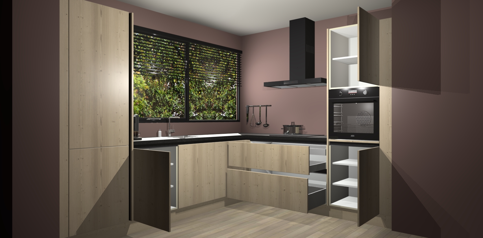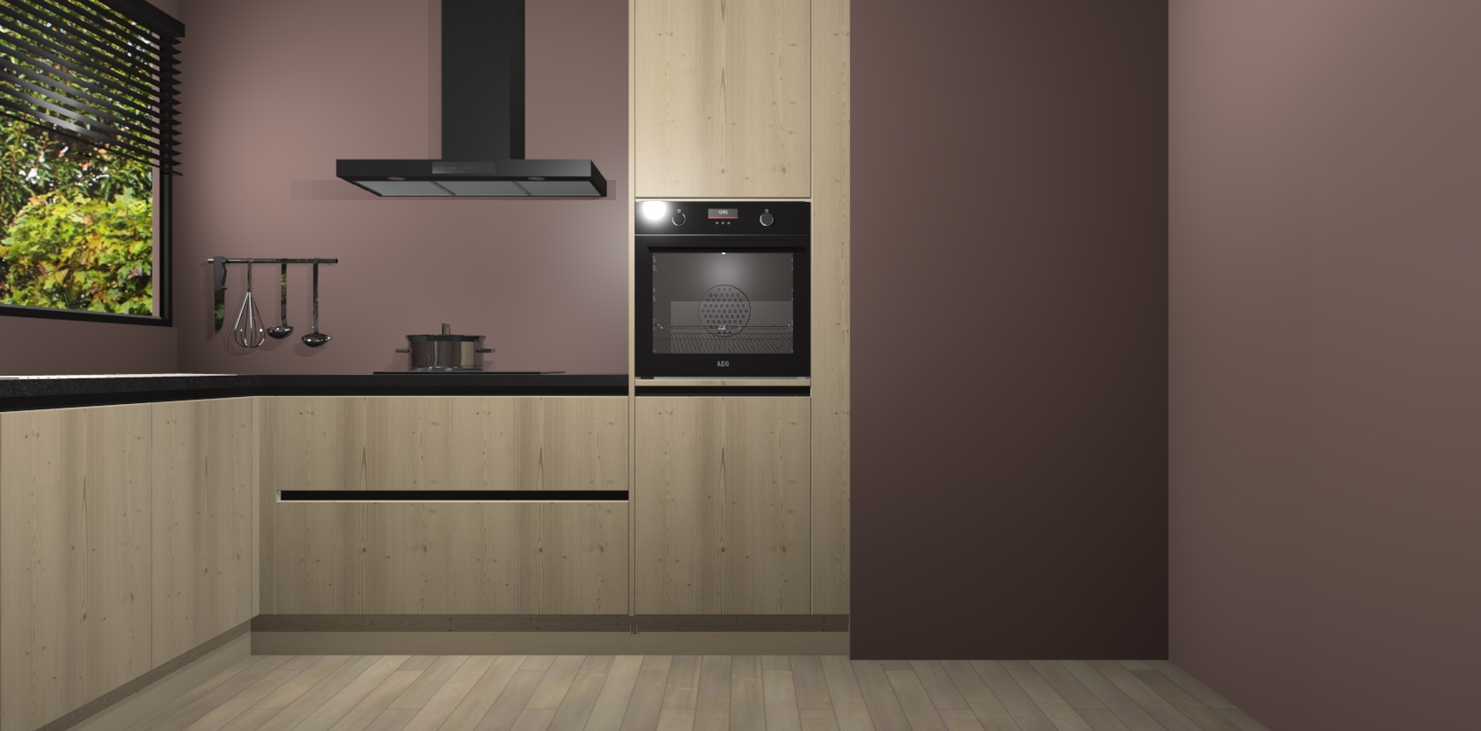 Met een modern, tijdloos design en ruime opslagruimte, zult u zich in no-time thuis voelen in uw nieuwe keuken. Uw leven wordt eenvoudiger met de soft-close deuren die voor het ultieme stille comfort zorgen - geen geluid dat u stoort terwijl u kookt. Ook is de keuken voorzien van 5 ingebouwde apparaten: een oven, inductie kookplaat, afzuigkap, vaatwasser en koelkast. Deze kunnen gemakkelijk na bestelling worden bijgewerkt naar AEG - waardoor uw luxe ervaring compleet is.