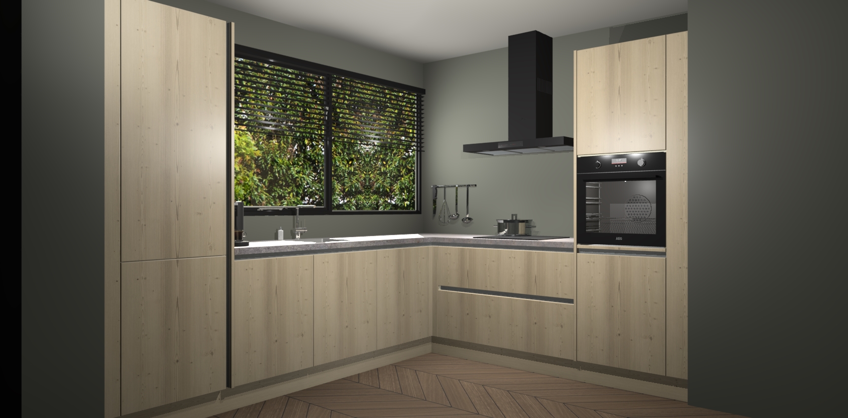 Met een modern, tijdloos design en ruime opslagruimte, zult u zich in no-time thuis voelen in uw nieuwe keuken. Uw leven wordt eenvoudiger met de soft-close deuren die voor het ultieme stille comfort zorgen - geen geluid dat u stoort terwijl u kookt. Ook is de keuken voorzien van 5 ingebouwde apparaten: een oven, inductie kookplaat, afzuigkap, vaatwasser en koelkast. Deze kunnen gemakkelijk na bestelling worden bijgewerkt naar AEG - waardoor uw luxe ervaring compleet is.