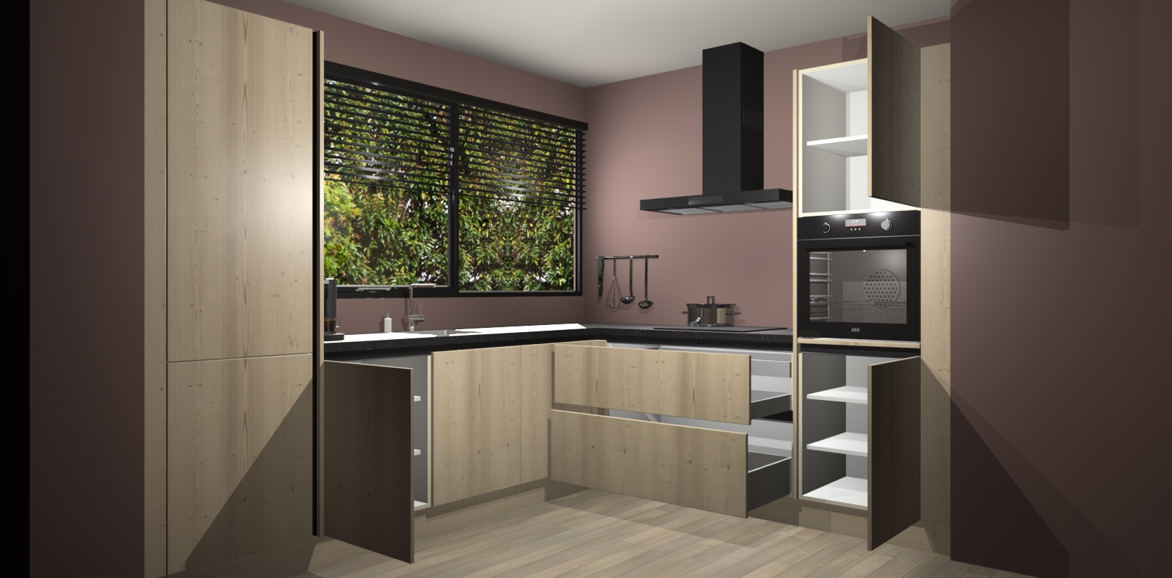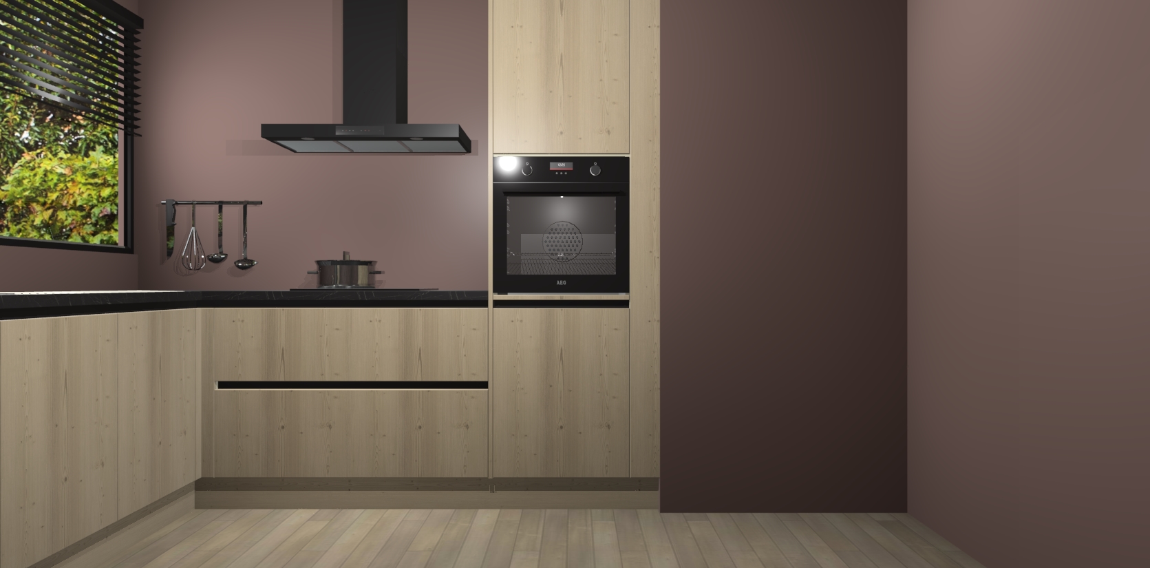 Met een modern, tijdloos design en ruime opslagruimte, zult u zich in no-time thuis voelen in uw nieuwe keuken. Uw leven wordt eenvoudiger met de soft-close deuren die voor het ultieme stille comfort zorgen - geen geluid dat u stoort terwijl u kookt. Ook is de keuken voorzien van 5 ingebouwde apparaten: een oven, inductie kookplaat, afzuigkap, vaatwasser en koelkast. Deze kunnen gemakkelijk na bestelling worden bijgewerkt naar AEG - waardoor uw luxe ervaring compleet is.