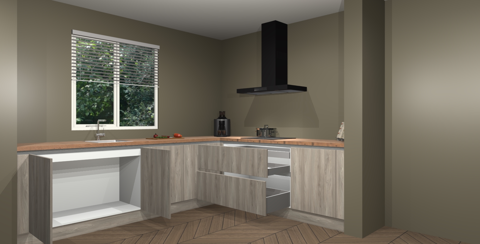 - Bij een hoekwerkblad zijn de hoeken in gevreesd en op maat gemaakt