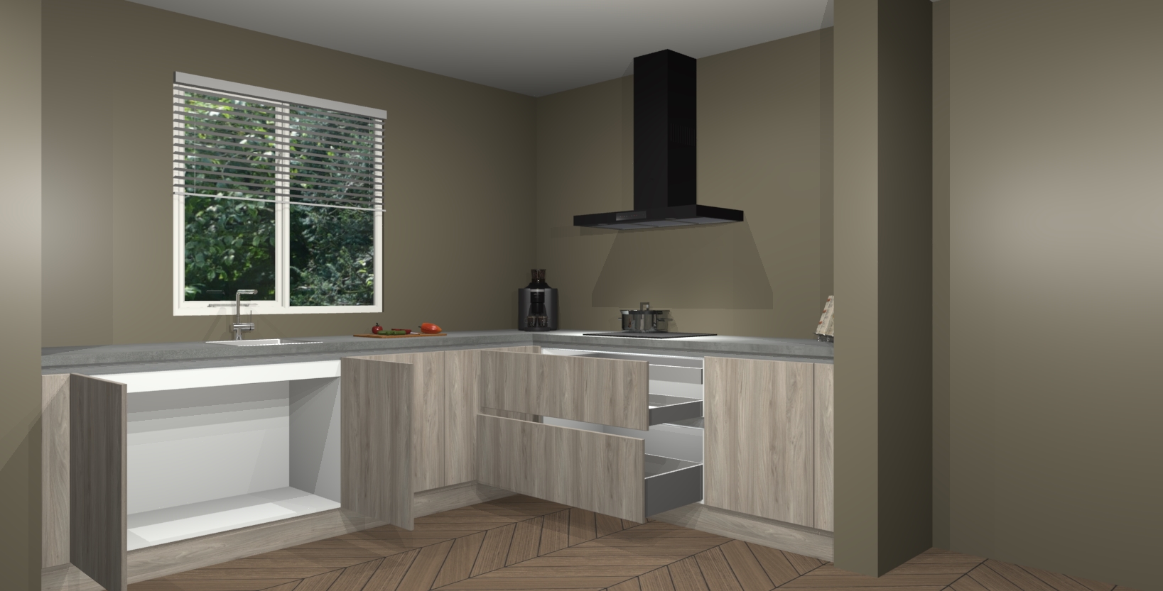 - Bij een hoekwerkblad zijn de hoeken in gevreesd en op maat gemaakt