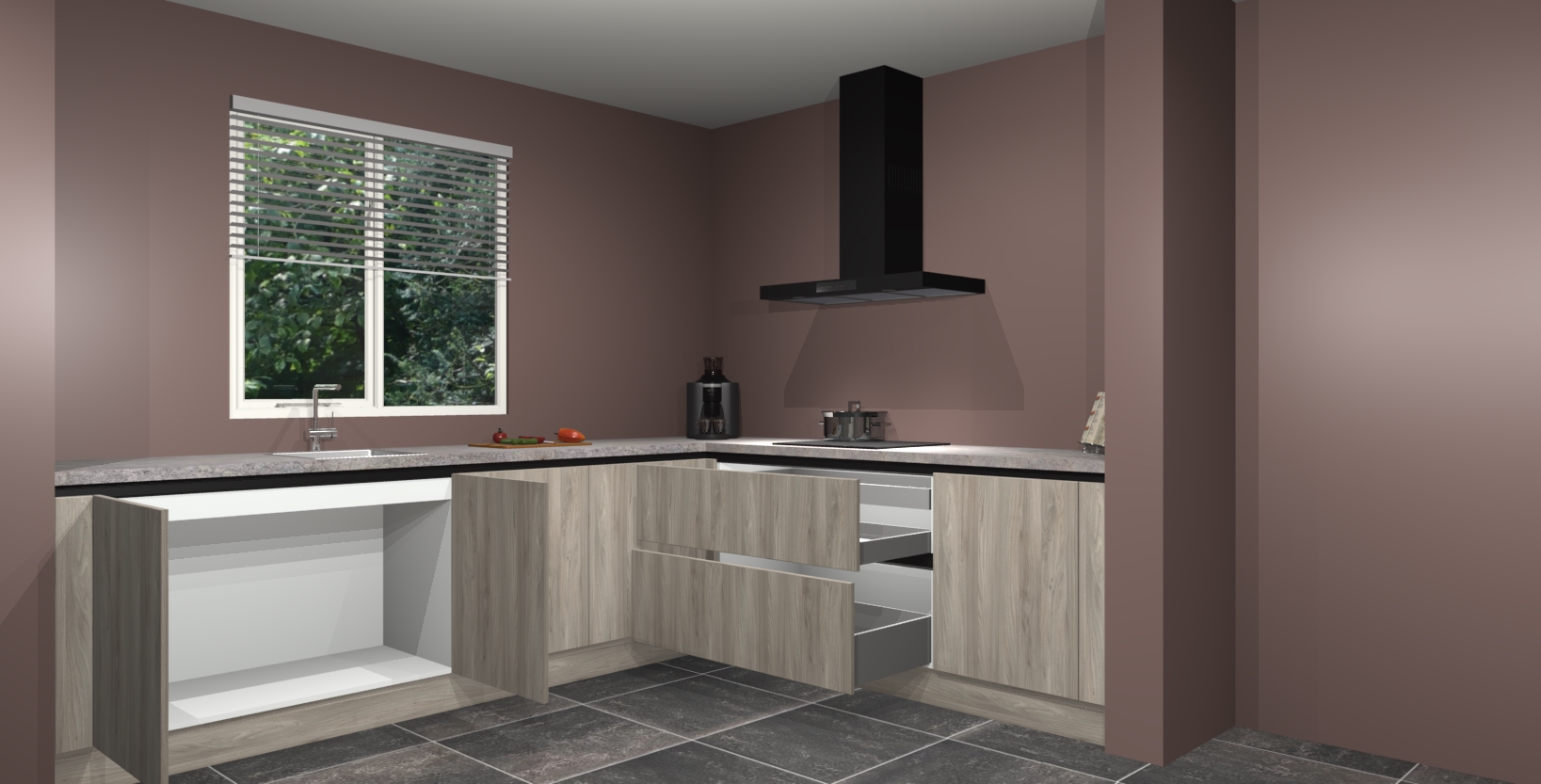 - Bij een hoekwerkblad zijn de hoeken in gevreesd en op maat gemaakt