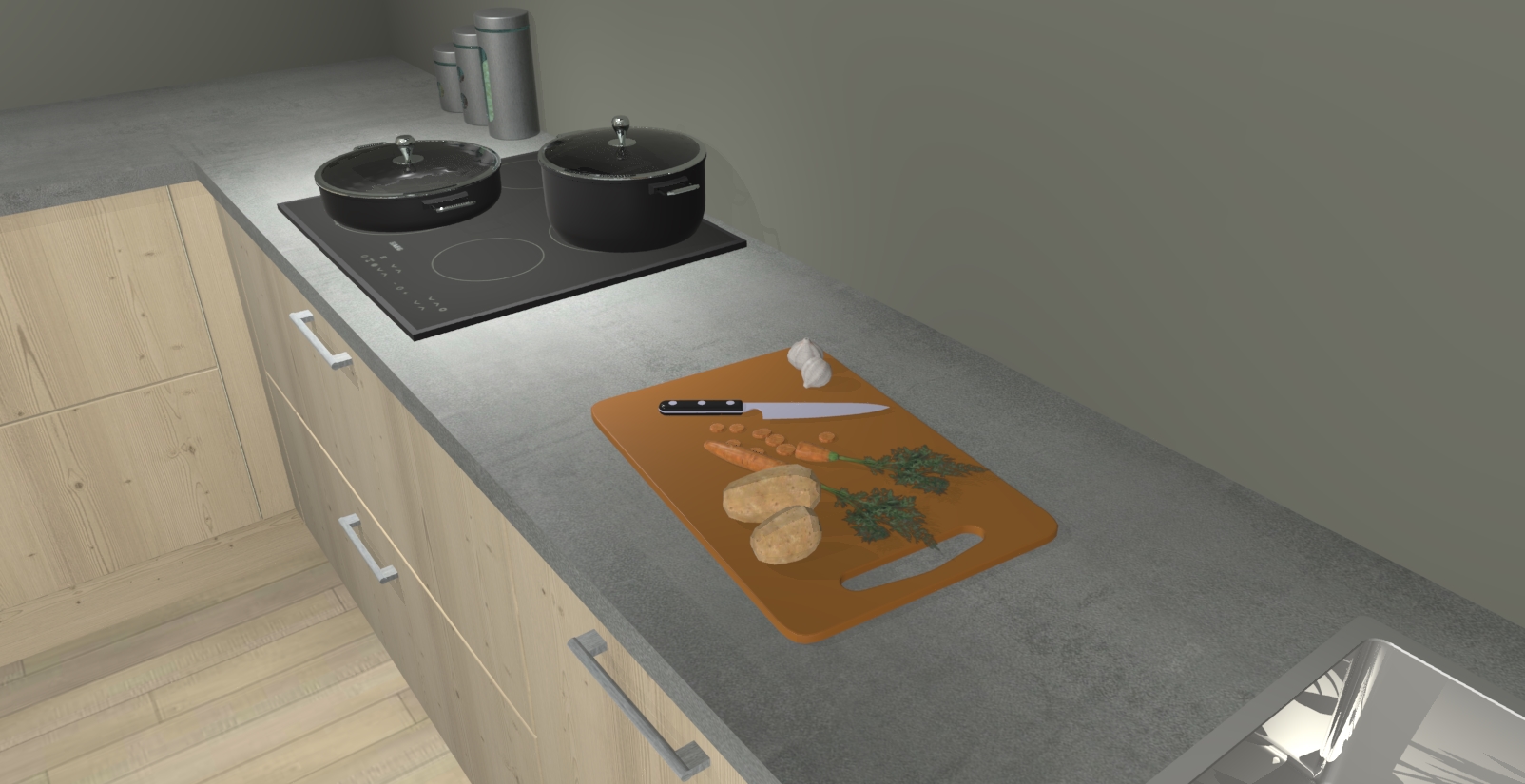 Inclusief plinten, stelpoten en werkblad