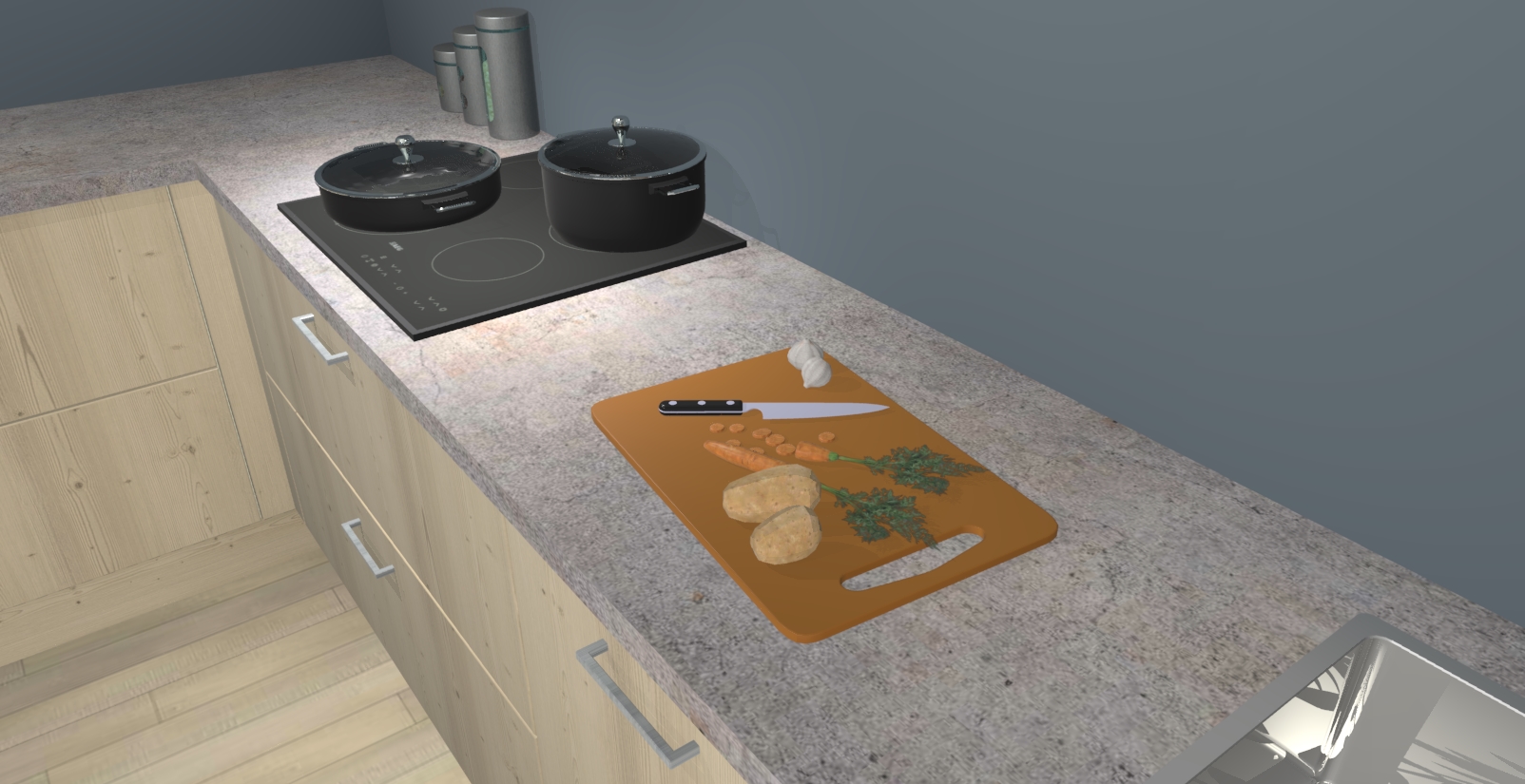 Inclusief plinten, stelpoten en werkblad
