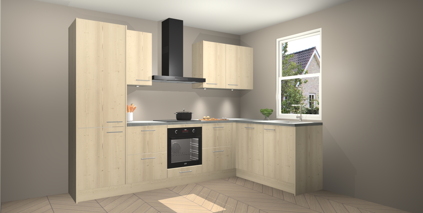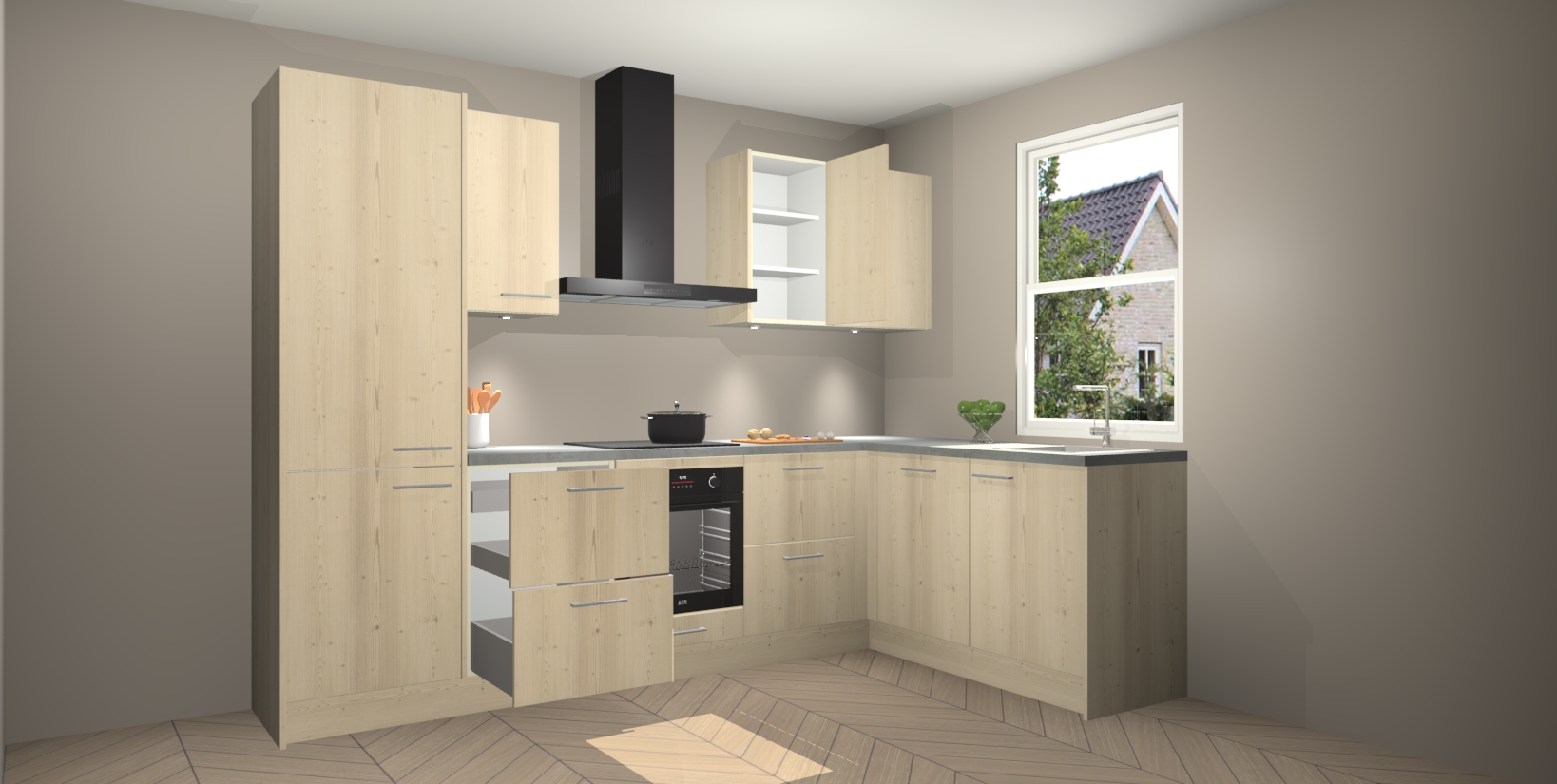 Maak kennis met de trendsettende en luxe Vuren keuken Bazel! Deze uitzonderlijke keuken van Duitse kwaliteit is stijlvol, modern en perfect om elk huis mee op te fleuren. De binnenkant van de kasten worden meegenomen in een bijpassende kleur om een samenhangende eigentijdse esthetiek te voltooien. U zult dol zijn op hoe uw pas gerenoveerde keuken eruitziet met de Vuren editie!