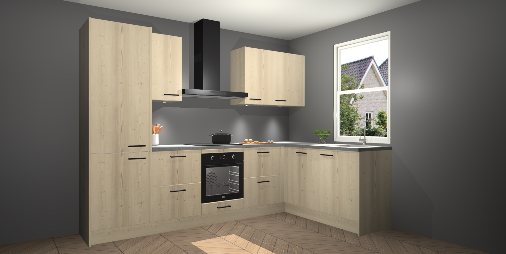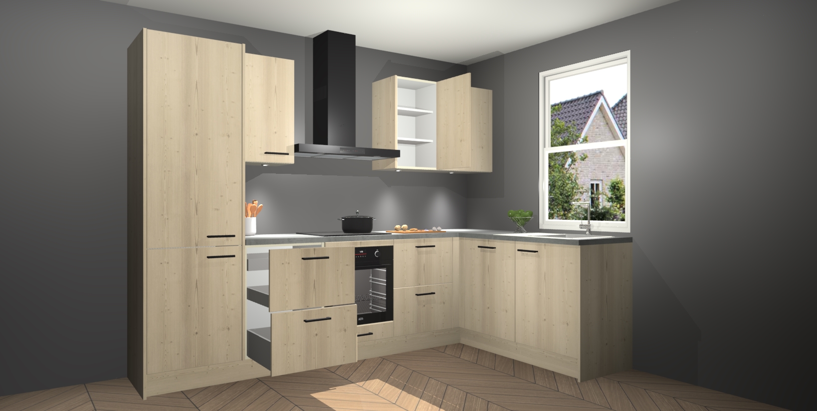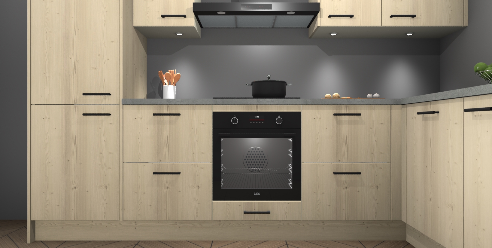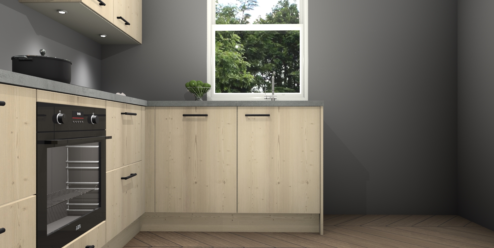 Maak kennis met de trendsettende en luxe Vuren keuken Bazel! Deze uitzonderlijke keuken van Duitse kwaliteit is stijlvol, modern en perfect om elk huis mee op te fleuren. De binnenkant van de kasten worden meegenomen in een bijpassende kleur om een samenhangende eigentijdse esthetiek te voltooien. U zult dol zijn op hoe uw pas gerenoveerde keuken eruitziet met de Vuren editie!