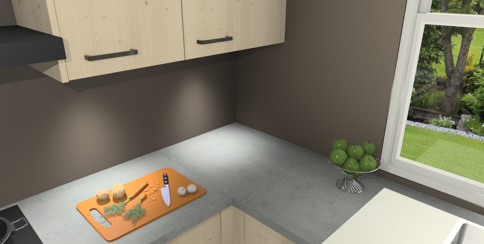 - Bij een hoekwerkblad zijn de hoeken in gevreesd en op maat gemaakt