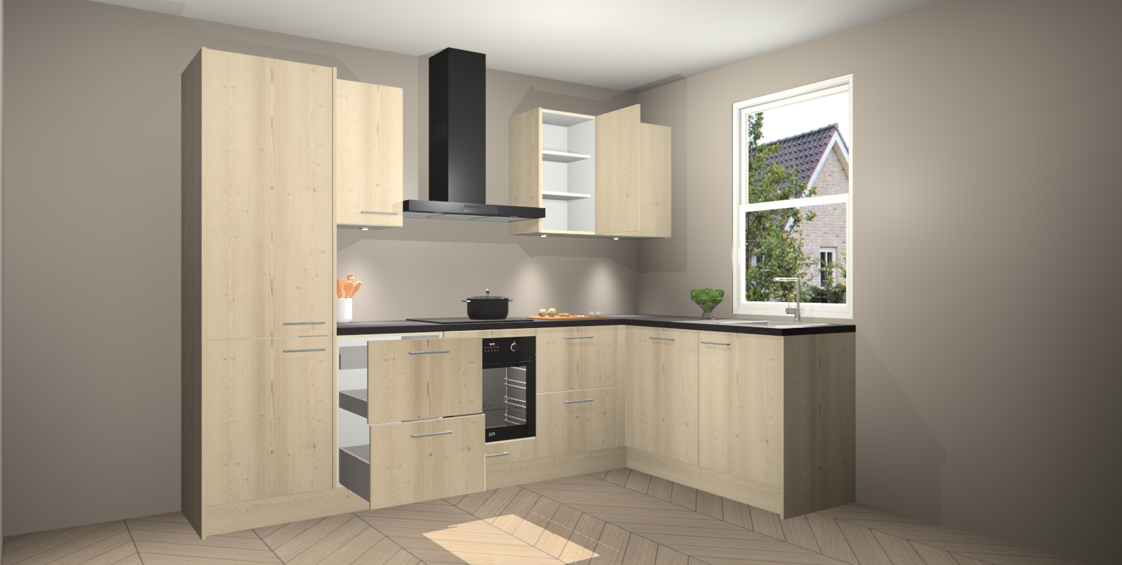 Maak kennis met de trendsettende en luxe Vuren keuken Bazel! Deze uitzonderlijke keuken van Duitse kwaliteit is stijlvol, modern en perfect om elk huis mee op te fleuren. De binnenkant van de kasten worden meegenomen in een bijpassende kleur om een samenhangende eigentijdse esthetiek te voltooien. U zult dol zijn op hoe uw pas gerenoveerde keuken eruitziet met de Vuren editie!