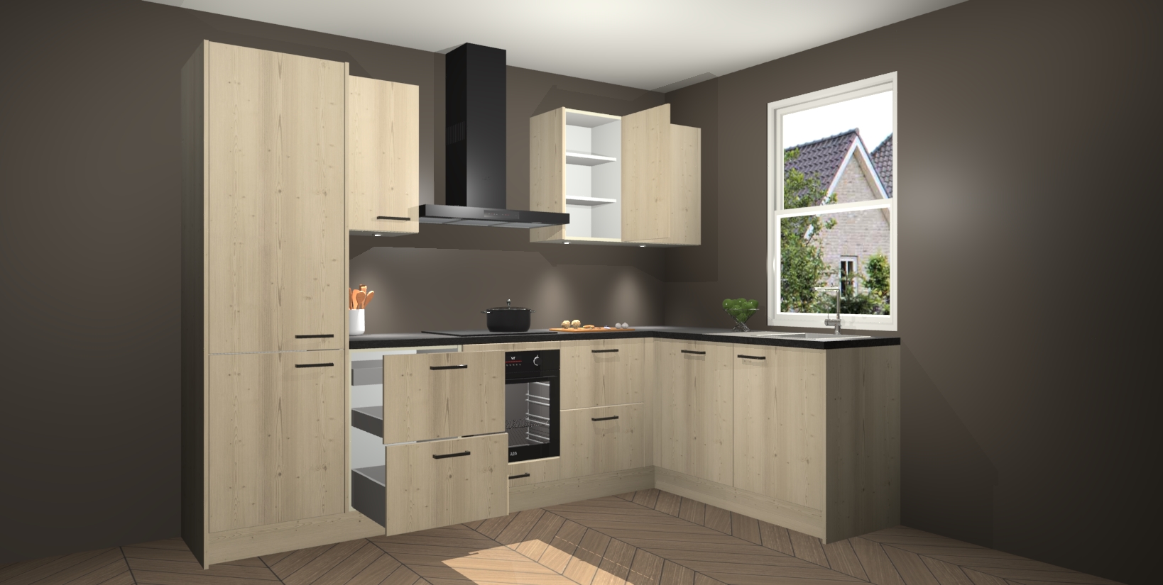 Maak kennis met de trendsettende en luxe Vuren keuken Bazel! Deze uitzonderlijke keuken van Duitse kwaliteit is stijlvol, modern en perfect om elk huis mee op te fleuren. De binnenkant van de kasten worden meegenomen in een bijpassende kleur om een samenhangende eigentijdse esthetiek te voltooien. U zult dol zijn op hoe uw pas gerenoveerde keuken eruitziet met de Vuren editie!