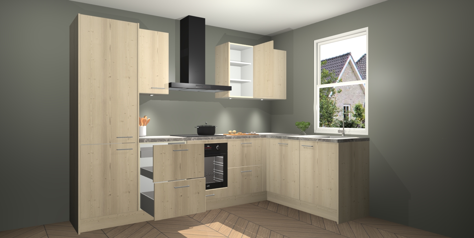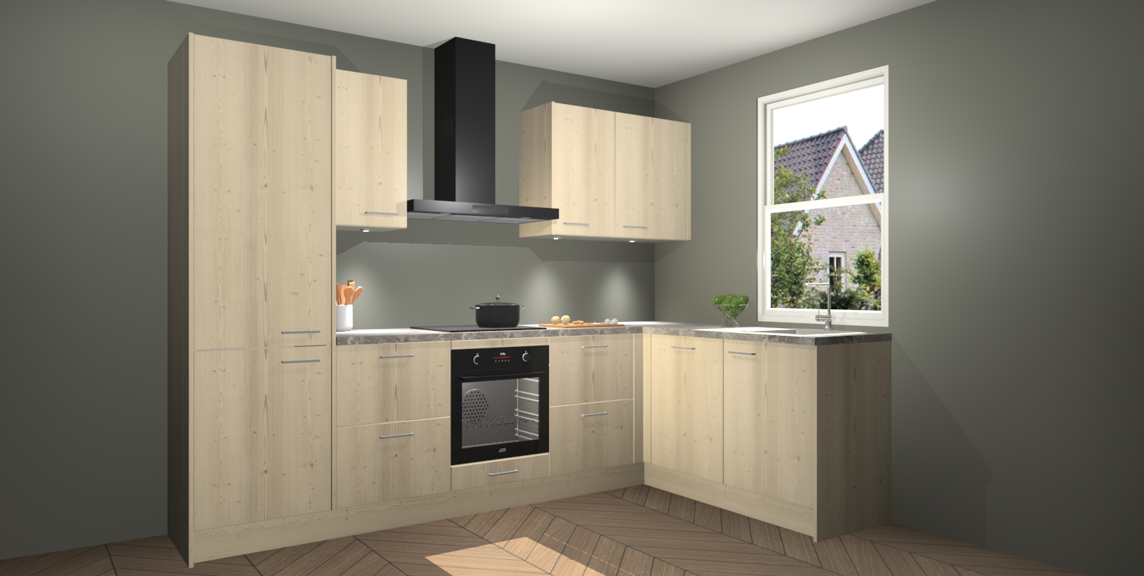 Maak kennis met de trendsettende en luxe Vuren keuken Bazel! Deze uitzonderlijke keuken van Duitse kwaliteit is stijlvol, modern en perfect om elk huis mee op te fleuren. De binnenkant van de kasten worden meegenomen in een bijpassende kleur om een samenhangende eigentijdse esthetiek te voltooien. U zult dol zijn op hoe uw pas gerenoveerde keuken eruitziet met de Vuren editie!