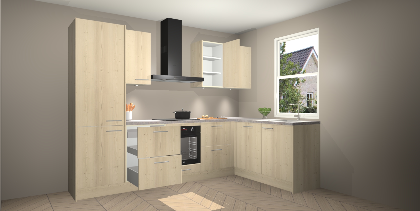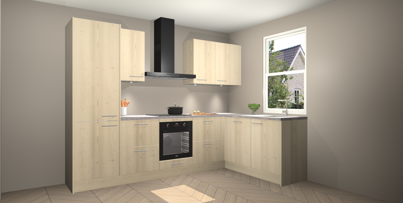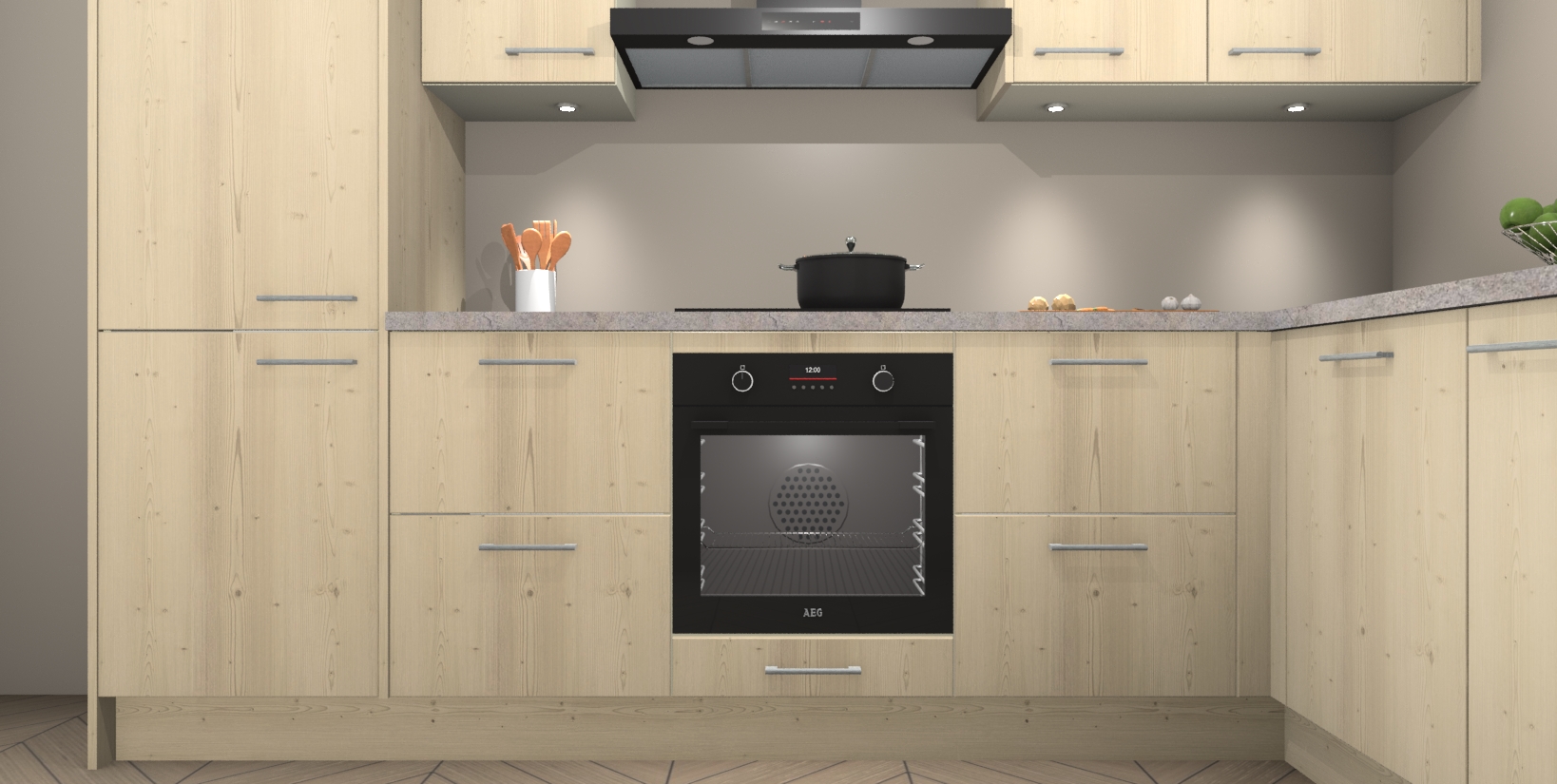 Maak kennis met de trendsettende en luxe Vuren keuken Bazel! Deze uitzonderlijke keuken van Duitse kwaliteit is stijlvol, modern en perfect om elk huis mee op te fleuren. De binnenkant van de kasten worden meegenomen in een bijpassende kleur om een samenhangende eigentijdse esthetiek te voltooien. U zult dol zijn op hoe uw pas gerenoveerde keuken eruitziet met de Vuren editie!