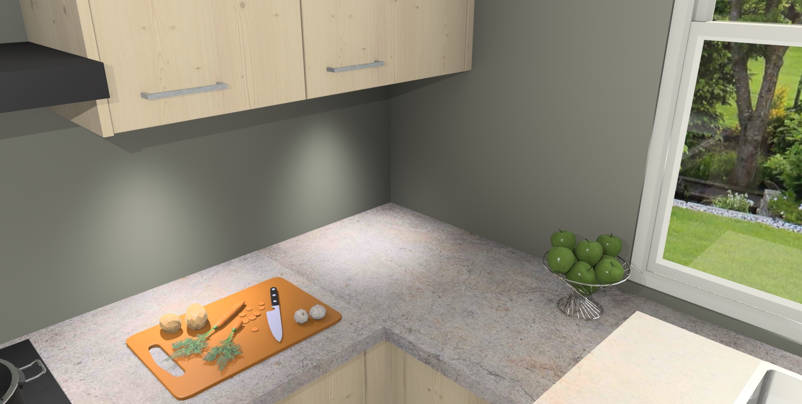 - Bij een hoekwerkblad zijn de hoeken in gevreesd en op maat gemaakt