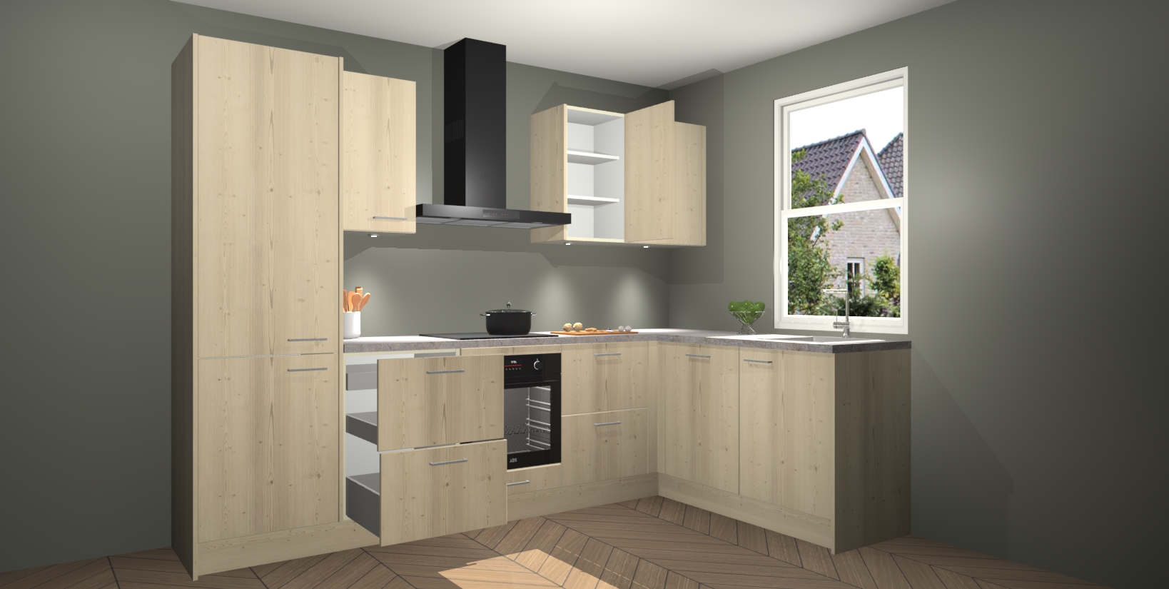 Maak kennis met de trendsettende en luxe Vuren keuken Bazel! Deze uitzonderlijke keuken van Duitse kwaliteit is stijlvol, modern en perfect om elk huis mee op te fleuren. De binnenkant van de kasten worden meegenomen in een bijpassende kleur om een samenhangende eigentijdse esthetiek te voltooien. U zult dol zijn op hoe uw pas gerenoveerde keuken eruitziet met de Vuren editie!