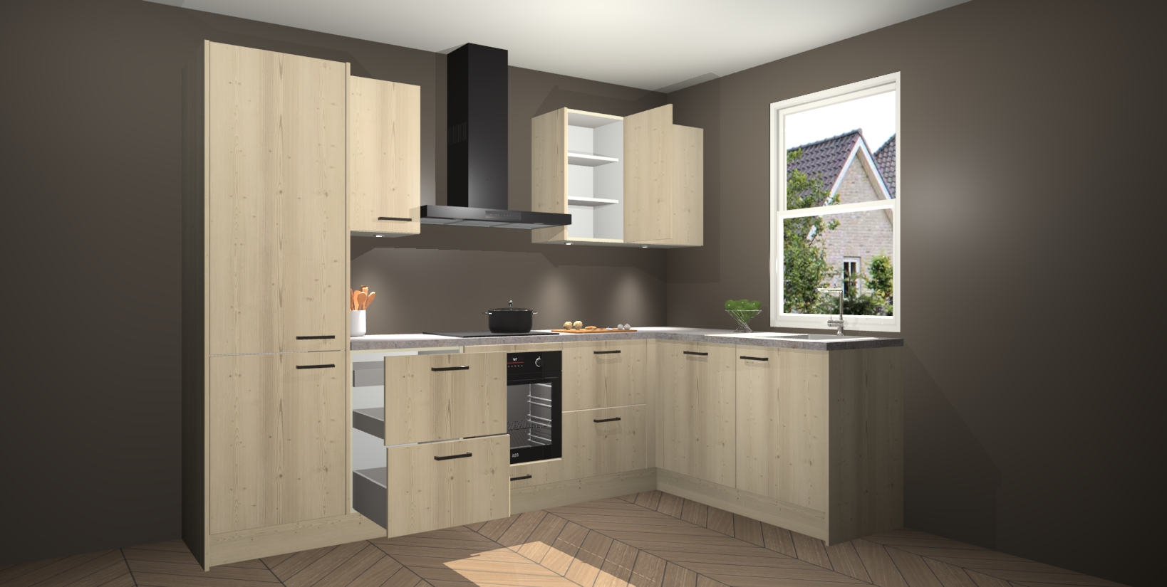 Maak kennis met de trendsettende en luxe Vuren keuken Bazel! Deze uitzonderlijke keuken van Duitse kwaliteit is stijlvol, modern en perfect om elk huis mee op te fleuren. De binnenkant van de kasten worden meegenomen in een bijpassende kleur om een samenhangende eigentijdse esthetiek te voltooien. U zult dol zijn op hoe uw pas gerenoveerde keuken eruitziet met de Vuren editie!