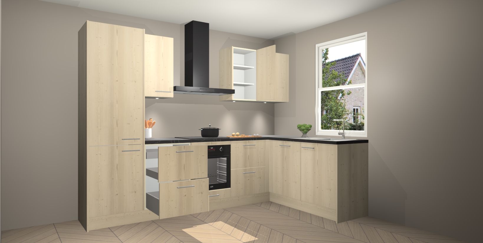 Maak kennis met de trendsettende en luxe Vuren keuken Bazel! Deze uitzonderlijke keuken van Duitse kwaliteit is stijlvol, modern en perfect om elk huis mee op te fleuren. De binnenkant van de kasten worden meegenomen in een bijpassende kleur om een samenhangende eigentijdse esthetiek te voltooien. U zult dol zijn op hoe uw pas gerenoveerde keuken eruitziet met de Vuren editie!