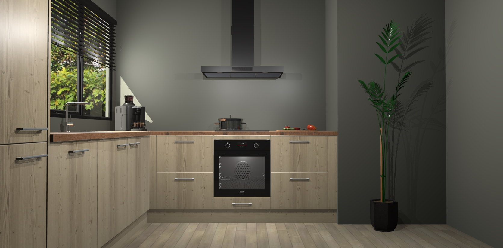 Met een modern, tijdloos design en ruime opslagruimte, zult u zich in no-time thuis voelen in uw nieuwe keuken. Uw leven wordt eenvoudiger met de soft-close deuren die voor het ultieme stille comfort zorgen - geen geluid dat u stoort terwijl u kookt. Ook is de keuken voorzien van 5 ingebouwde apparaten: een oven, inductie kookplaat, afzuigkap, vaatwasser en koelkast. Deze kunnen gemakkelijk na bestelling worden bijgewerkt naar AEG - waardoor uw luxe ervaring compleet is.