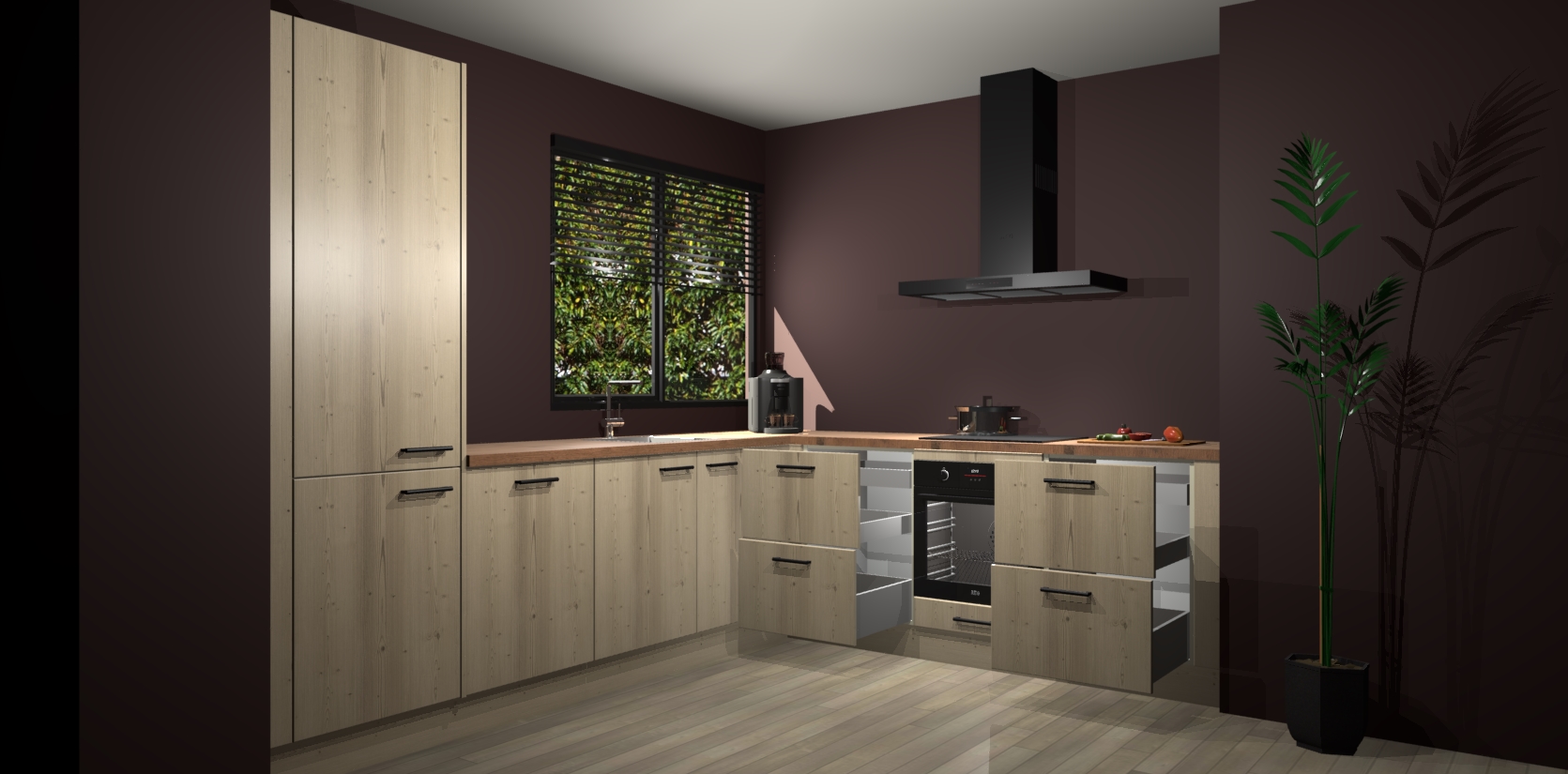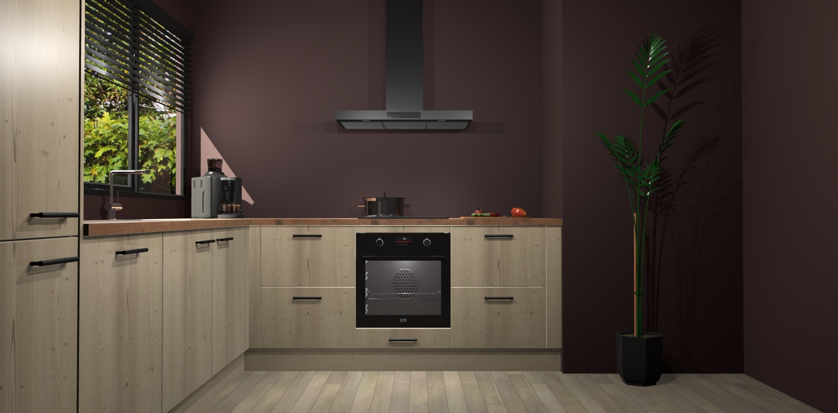 Met een modern, tijdloos design en ruime opslagruimte, zult u zich in no-time thuis voelen in uw nieuwe keuken. Uw leven wordt eenvoudiger met de soft-close deuren die voor het ultieme stille comfort zorgen - geen geluid dat u stoort terwijl u kookt. Ook is de keuken voorzien van 5 ingebouwde apparaten: een oven, inductie kookplaat, afzuigkap, vaatwasser en koelkast. Deze kunnen gemakkelijk na bestelling worden bijgewerkt naar AEG - waardoor uw luxe ervaring compleet is.