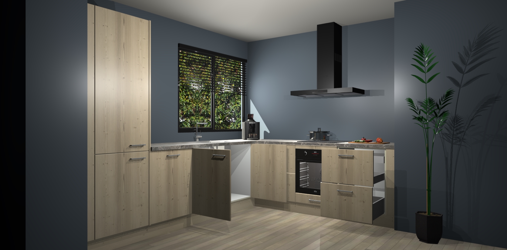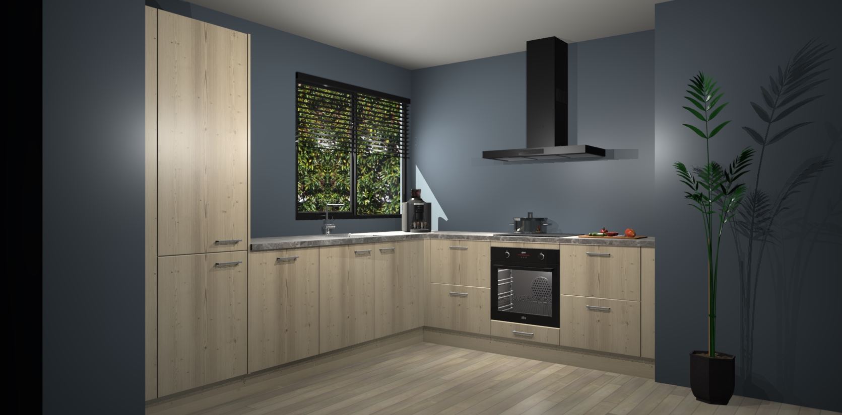 Met een modern, tijdloos design en ruime opslagruimte, zult u zich in no-time thuis voelen in uw nieuwe keuken. Uw leven wordt eenvoudiger met de soft-close deuren die voor het ultieme stille comfort zorgen - geen geluid dat u stoort terwijl u kookt. Ook is de keuken voorzien van 5 ingebouwde apparaten: een oven, inductie kookplaat, afzuigkap, vaatwasser en koelkast. Deze kunnen gemakkelijk na bestelling worden bijgewerkt naar AEG - waardoor uw luxe ervaring compleet is.