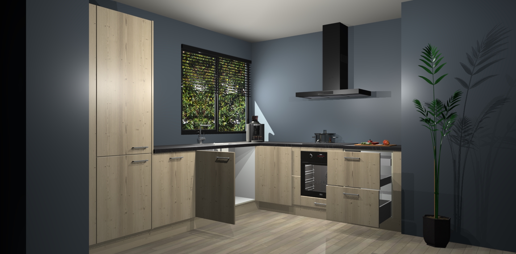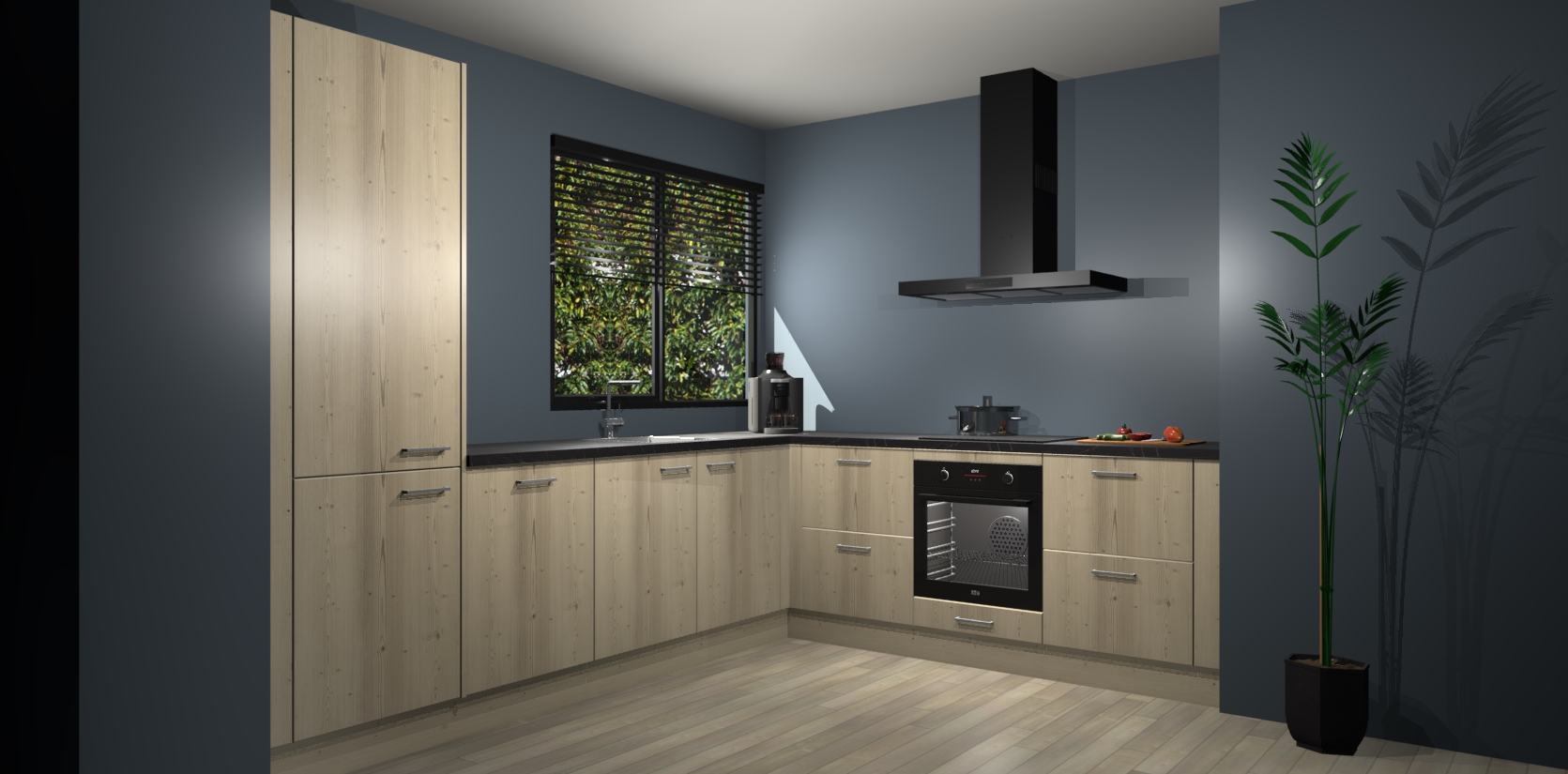 Met een modern, tijdloos design en ruime opslagruimte, zult u zich in no-time thuis voelen in uw nieuwe keuken. Uw leven wordt eenvoudiger met de soft-close deuren die voor het ultieme stille comfort zorgen - geen geluid dat u stoort terwijl u kookt. Ook is de keuken voorzien van 5 ingebouwde apparaten: een oven, inductie kookplaat, afzuigkap, vaatwasser en koelkast. Deze kunnen gemakkelijk na bestelling worden bijgewerkt naar AEG - waardoor uw luxe ervaring compleet is.