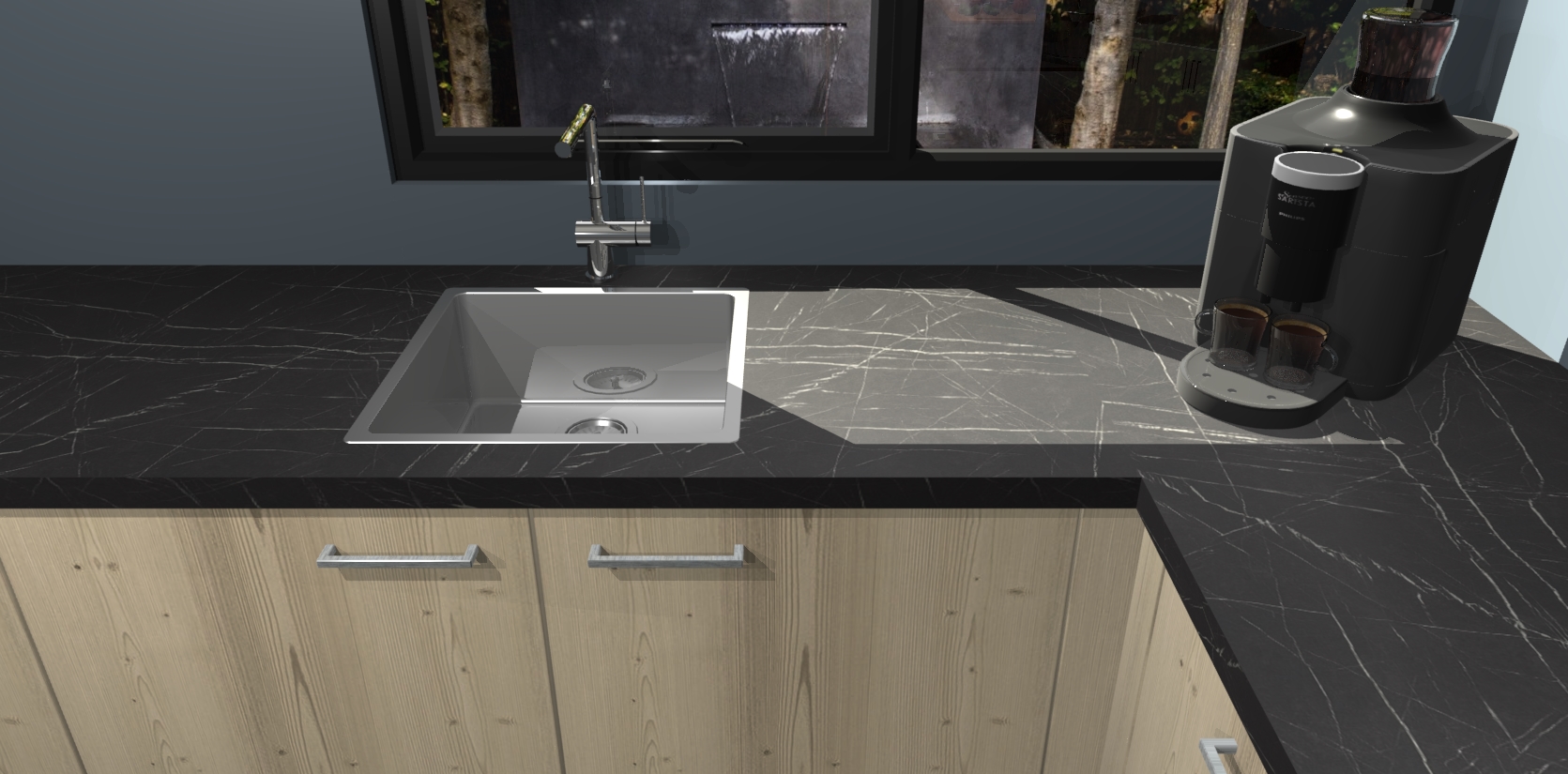 - Bij een hoekwerkblad zijn de hoeken in gevreesd en op maat gemaakt