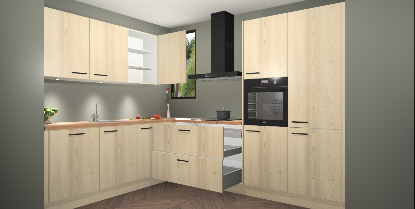 De ruime opbergruimte van dit model maakt het bereiden van voedsel en het gebruik van apparaten snel en gemakkelijk. Het beste van alles is dat het wordt geleverd met vijf inbouwapparaten: een oven, inductiekookplaat, afzuigkap, vaatwasser en koelkast - die allemaal gemakkelijk kunnen worden opgewaardeerd naar AEG na aankoop. Wat de gemaksfactor nog groter maakt, is het feit dat alle cabines voorgemonteerd worden geleverd, zodat u er meteen mee aan de slag kunt!