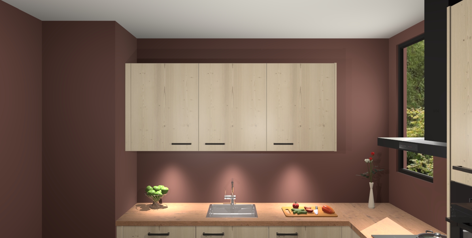 Maak u keuken elegant en verfijnd met de vuren keuken Buenos Aires! Dit prachtige stuk heeft warme kleuren voor een strak, modern gevoel dat u de adem zal benemen. De handgrepen heeft net als de binnenkant van de kasten dezelfde vuren afwerking, waardoor alles er nog beter uitziet.